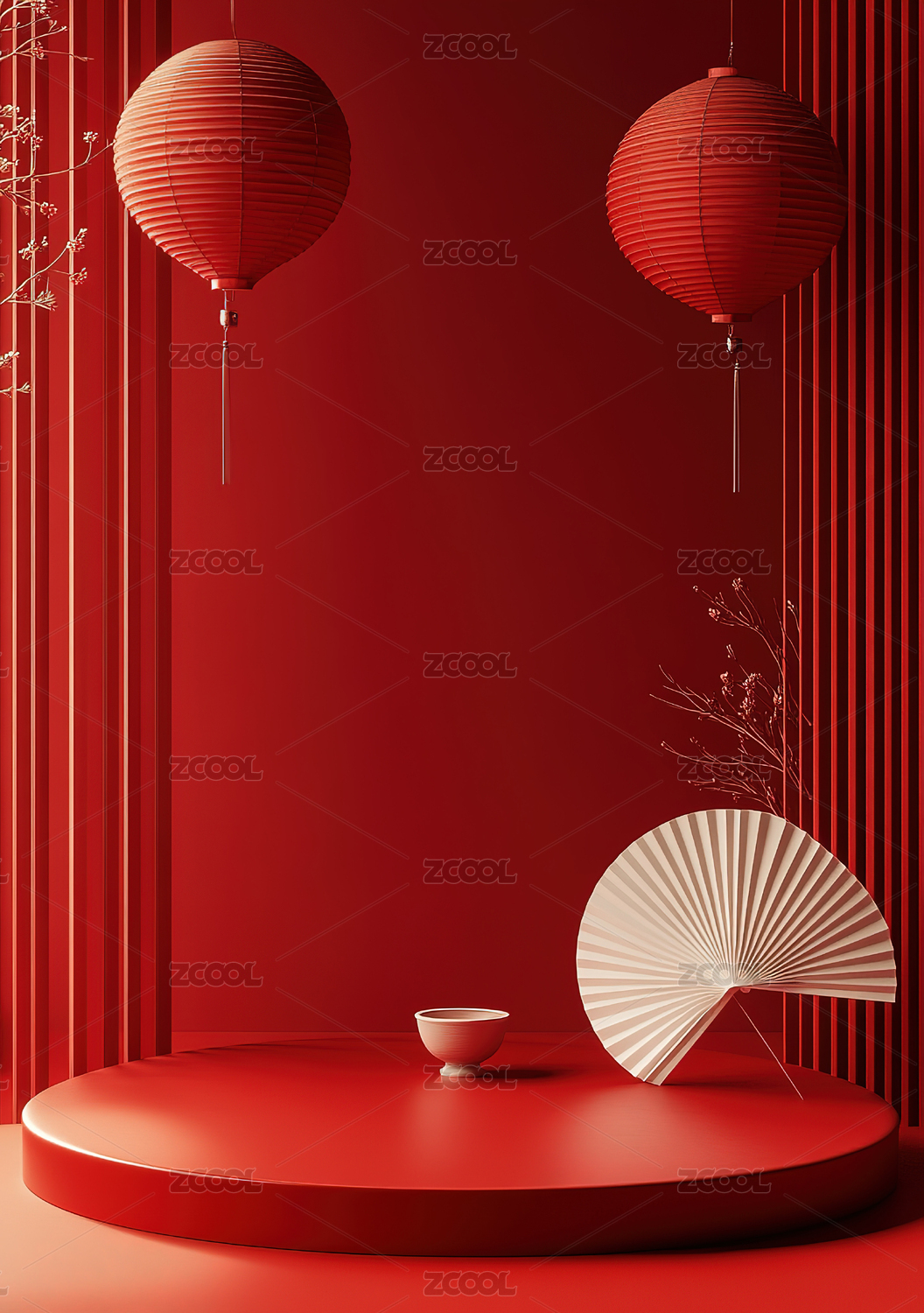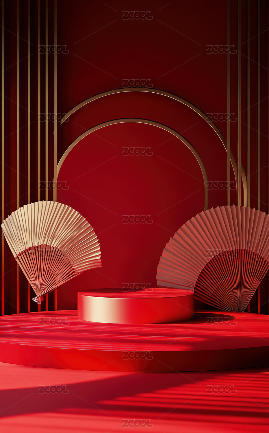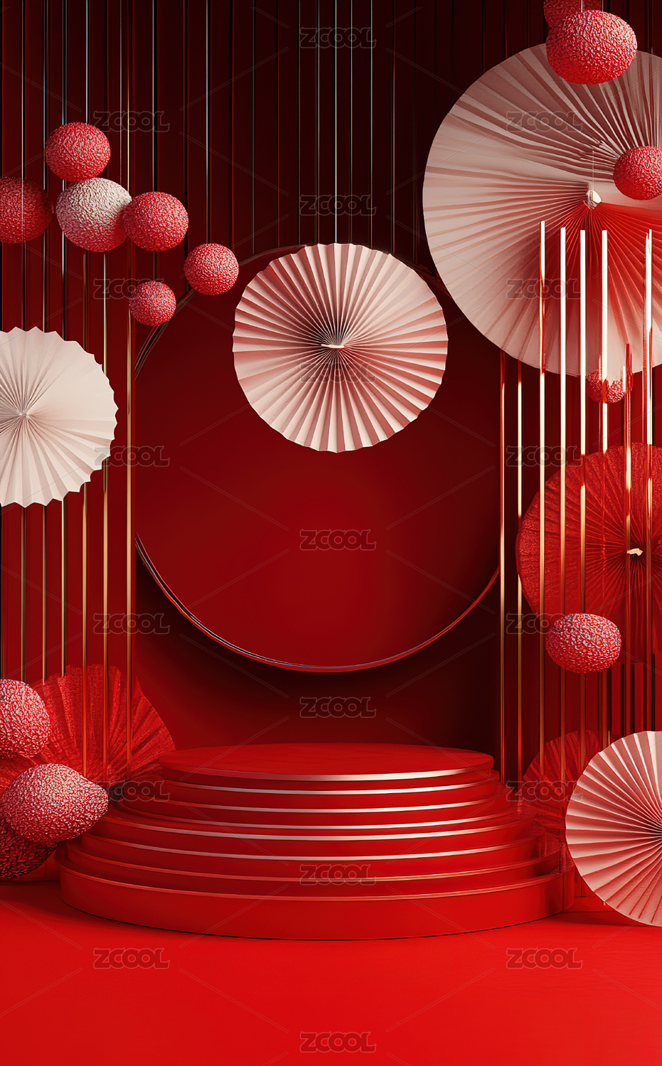 背景,展览,产品展台,三维图形,中国文化,红色,插画,抽象,春节,C4D软件