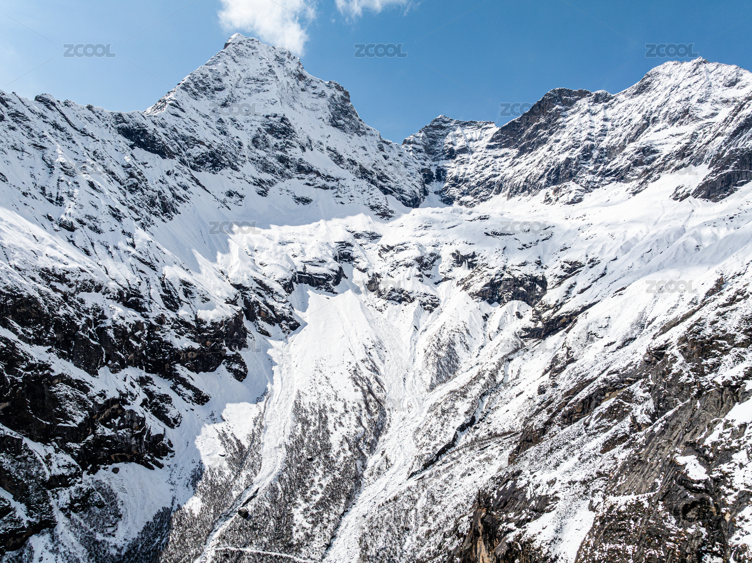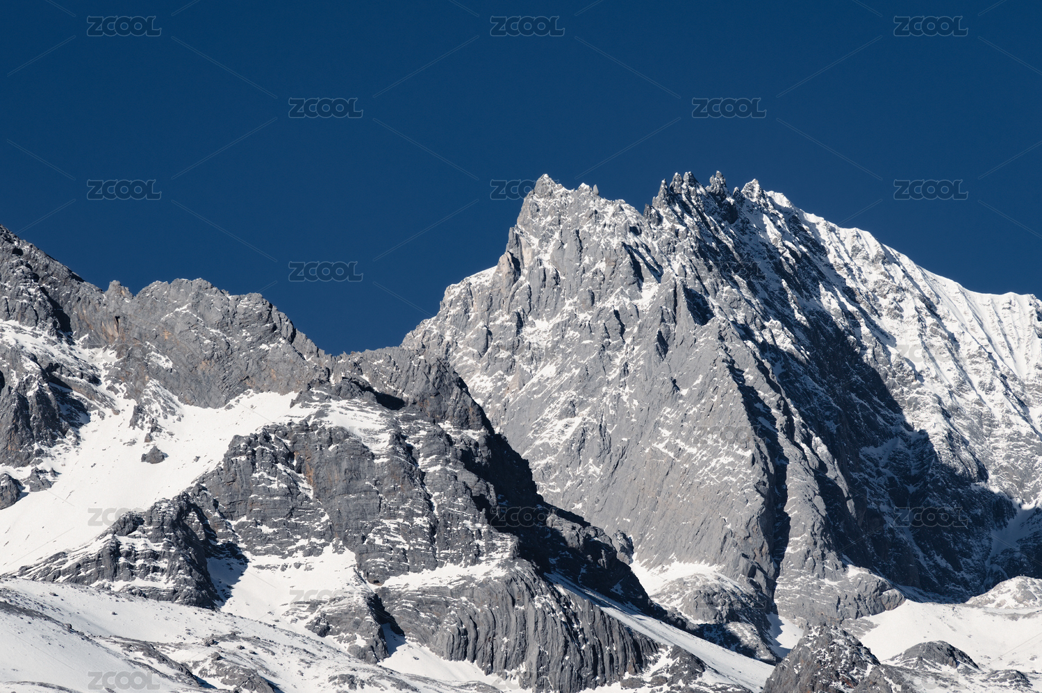 纯净蓝天下云南丽江玉龙雪山局部特写