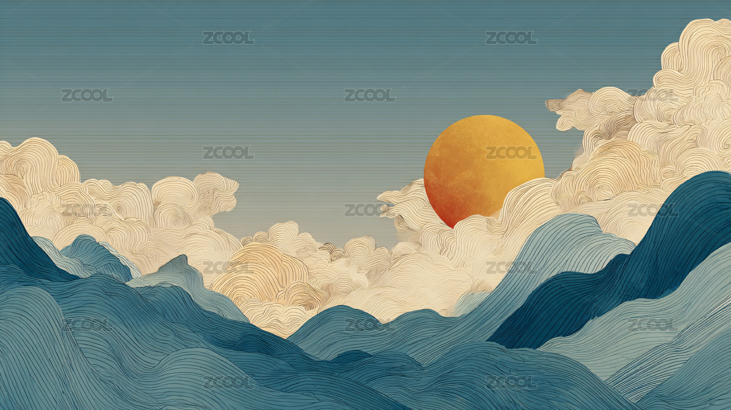国潮风,国风,中国文化,传统文化,背景,传统,地形,节气,高山,插画