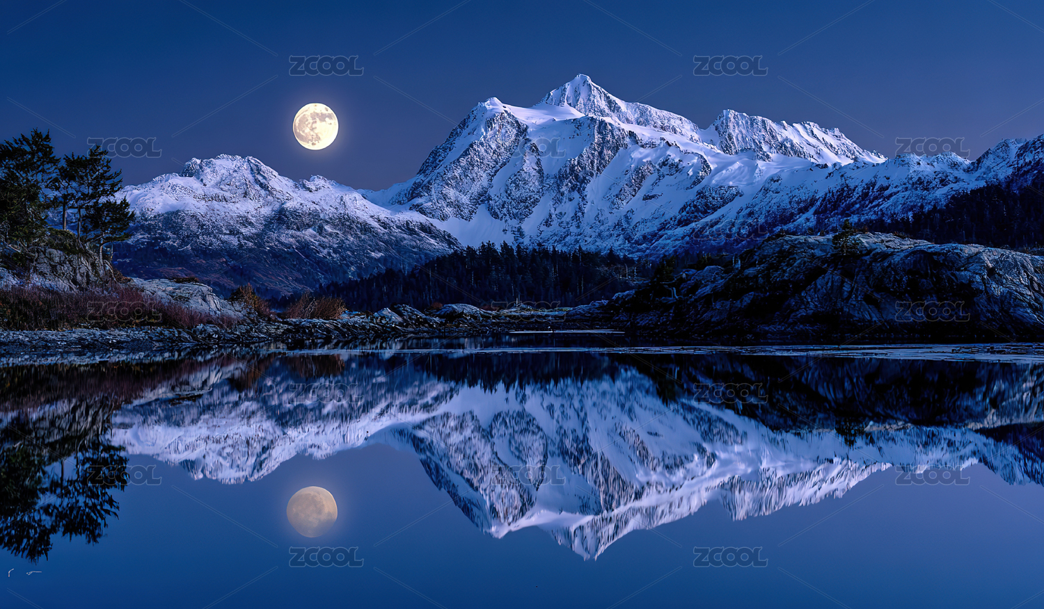 雪山倒影映月夜
