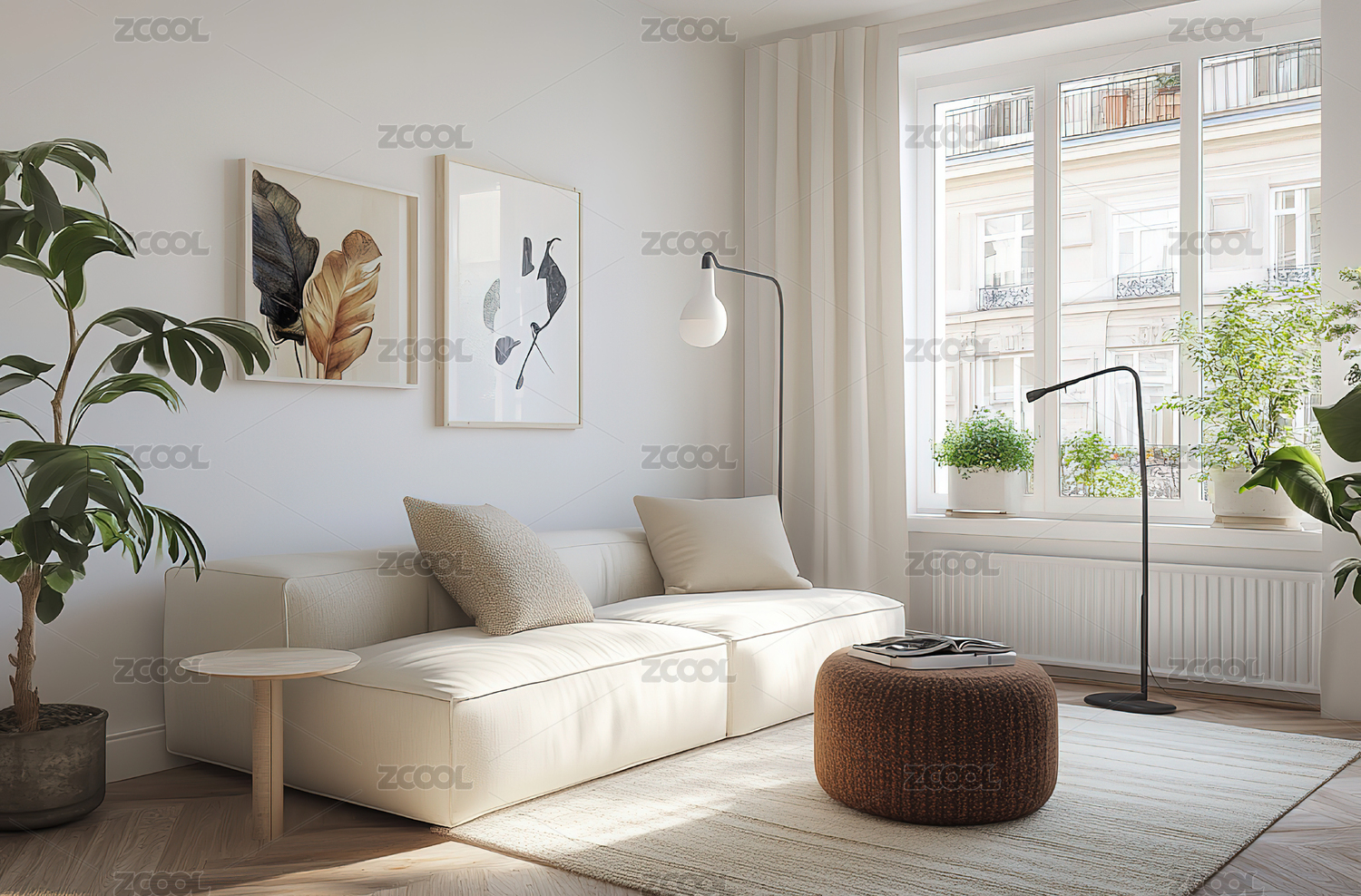 室内,住宅内部,样板间,沙发,起居室,现代,白色,窗户,窗帘,白昼