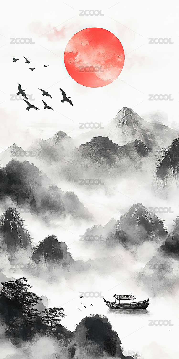 自然,中国文化,水墨画,插画,地形,高山,中国画,写意画,背景,风景