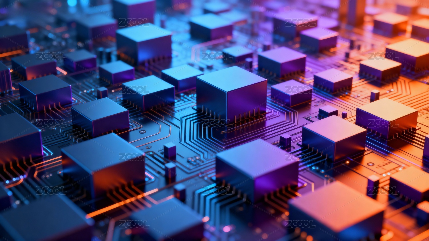 电子电路板抽象立方体渲染