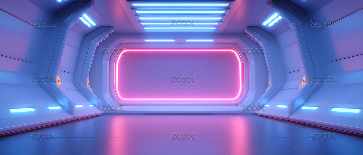 未来感走廊与发光线条