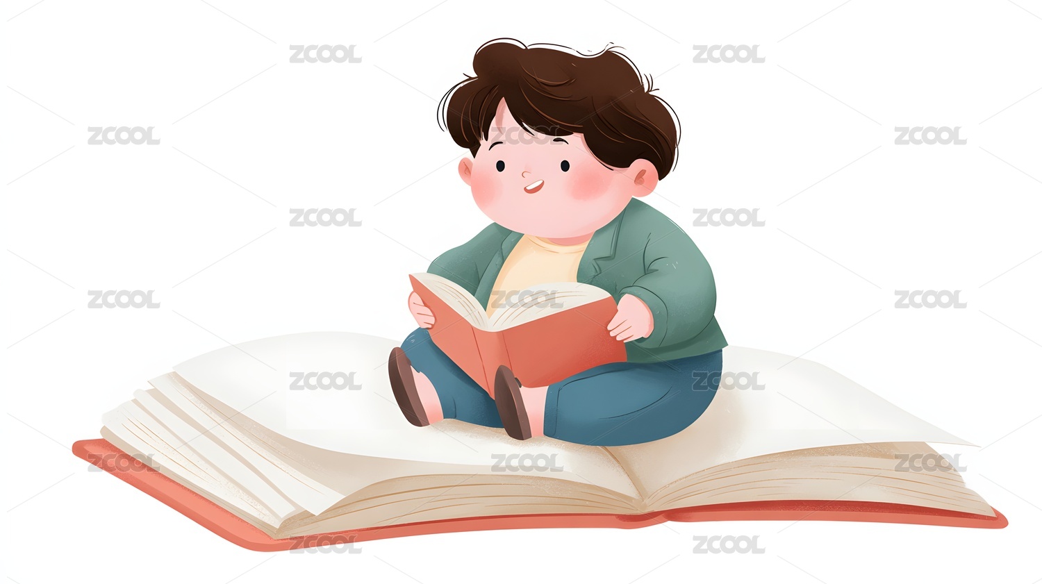 元素,可爱,男孩,放大镜,看书,学习,知识,可爱风格,世界读书日,插画