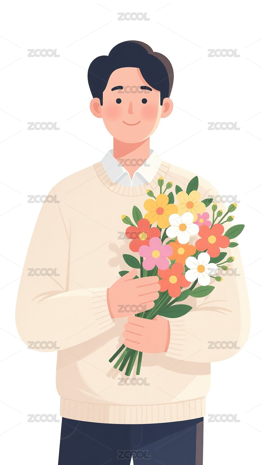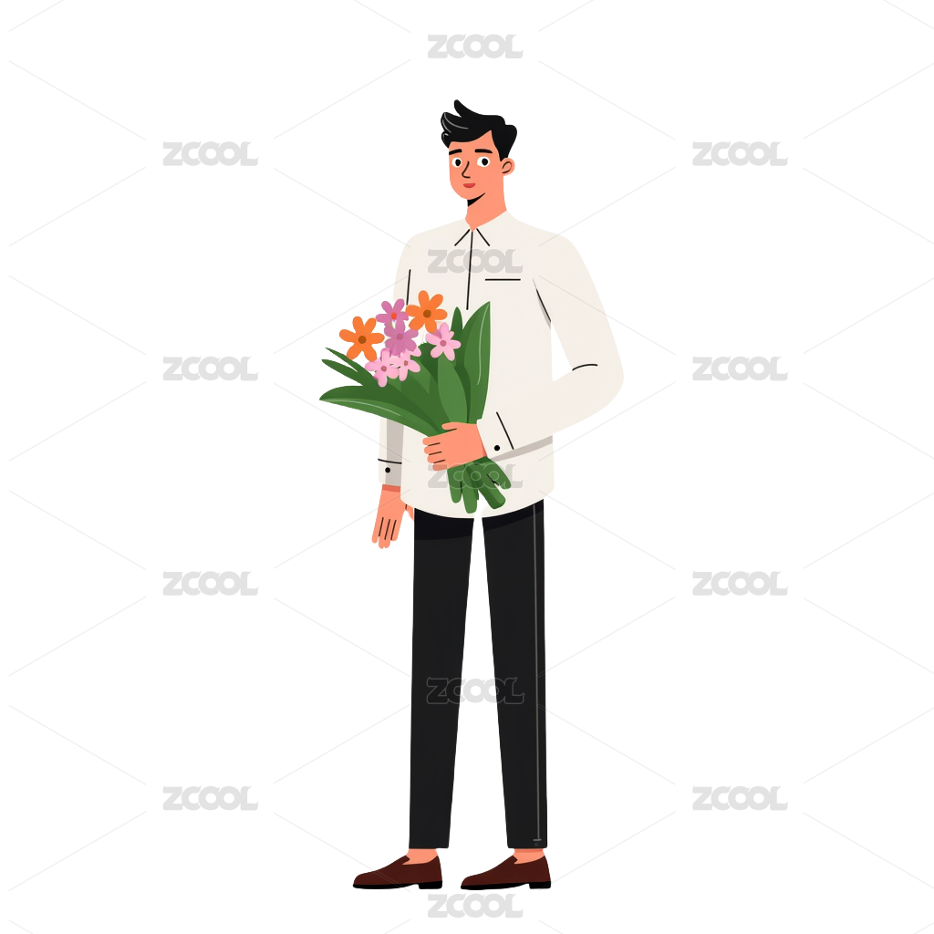 水彩风格,男性,穿礼服,求婚,插画,人物,元素,手棒花,玫瑰花,爱情