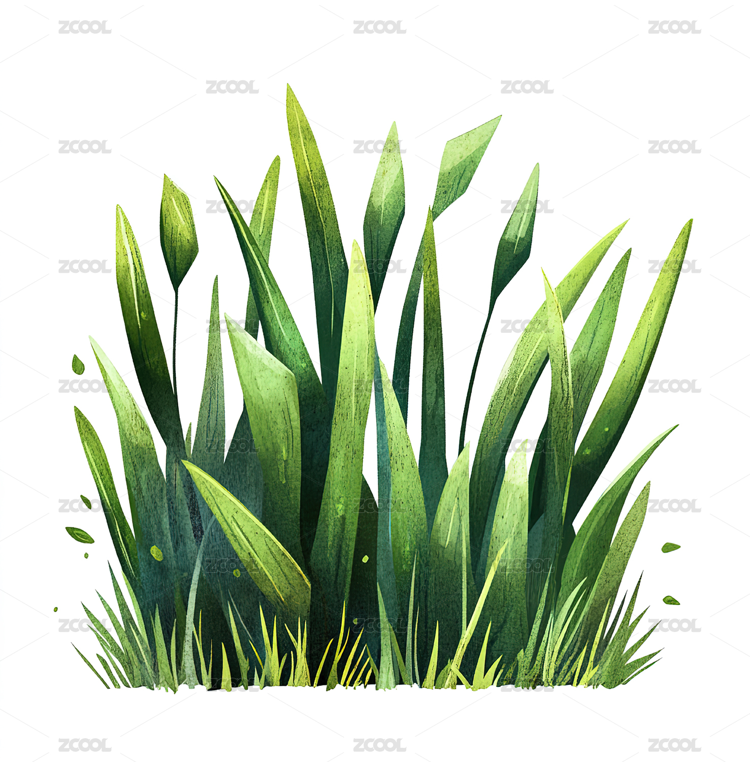 手绘绿色植物水彩插画元素