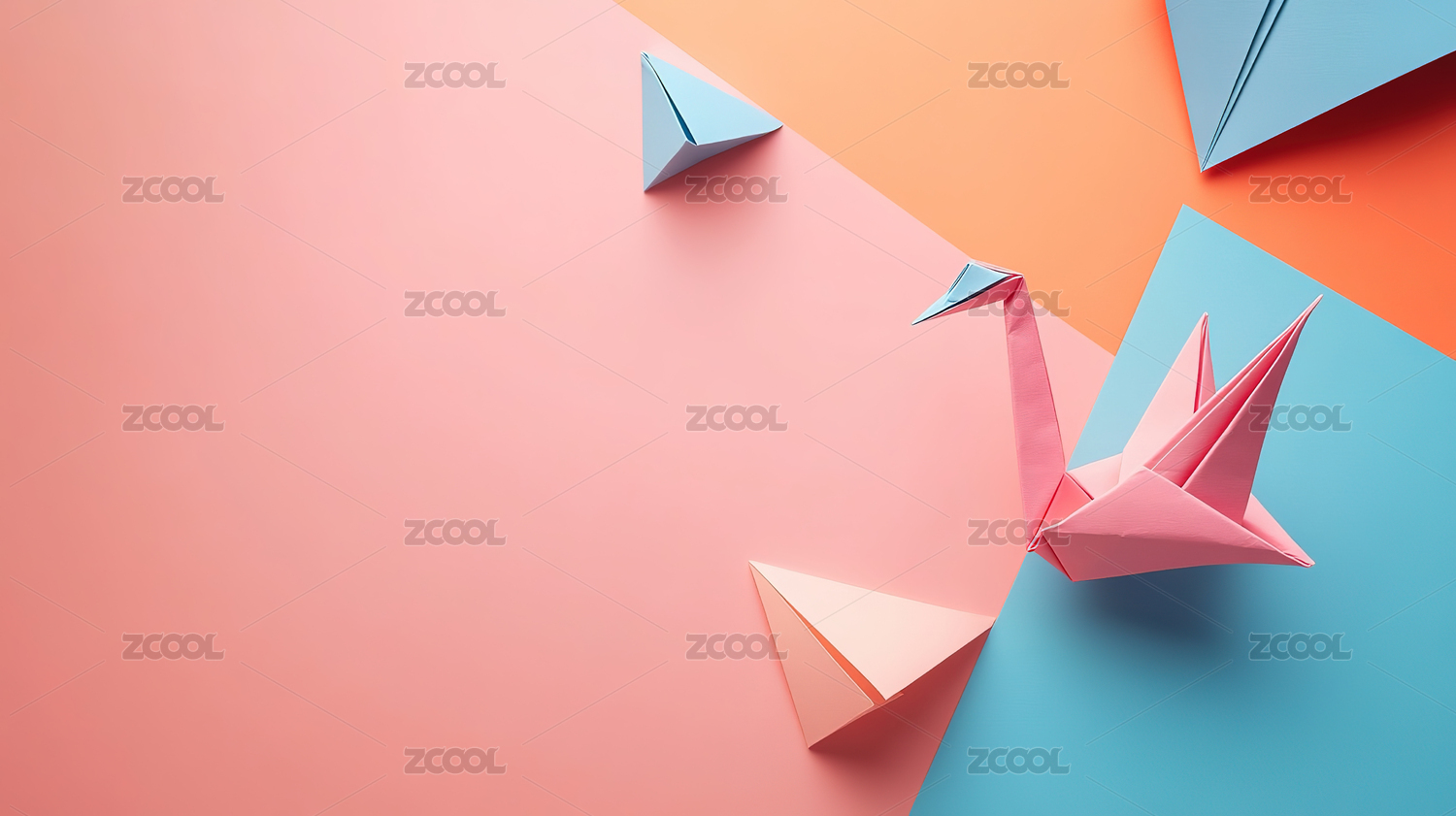彩色卡纸堆叠在桌面上形成简约抽象的色块