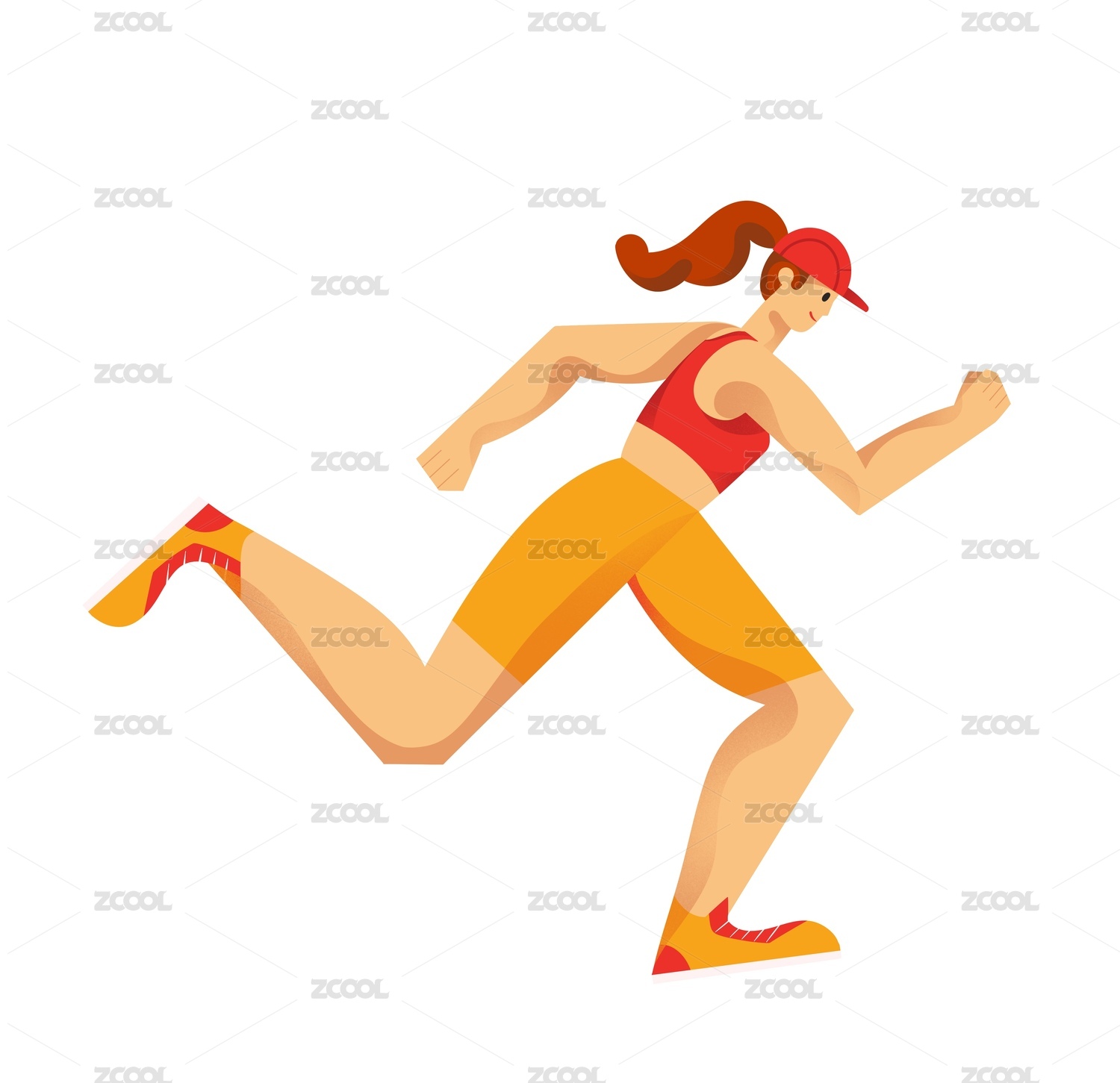 清新扁平插画一个青年女孩快速跑步的侧面