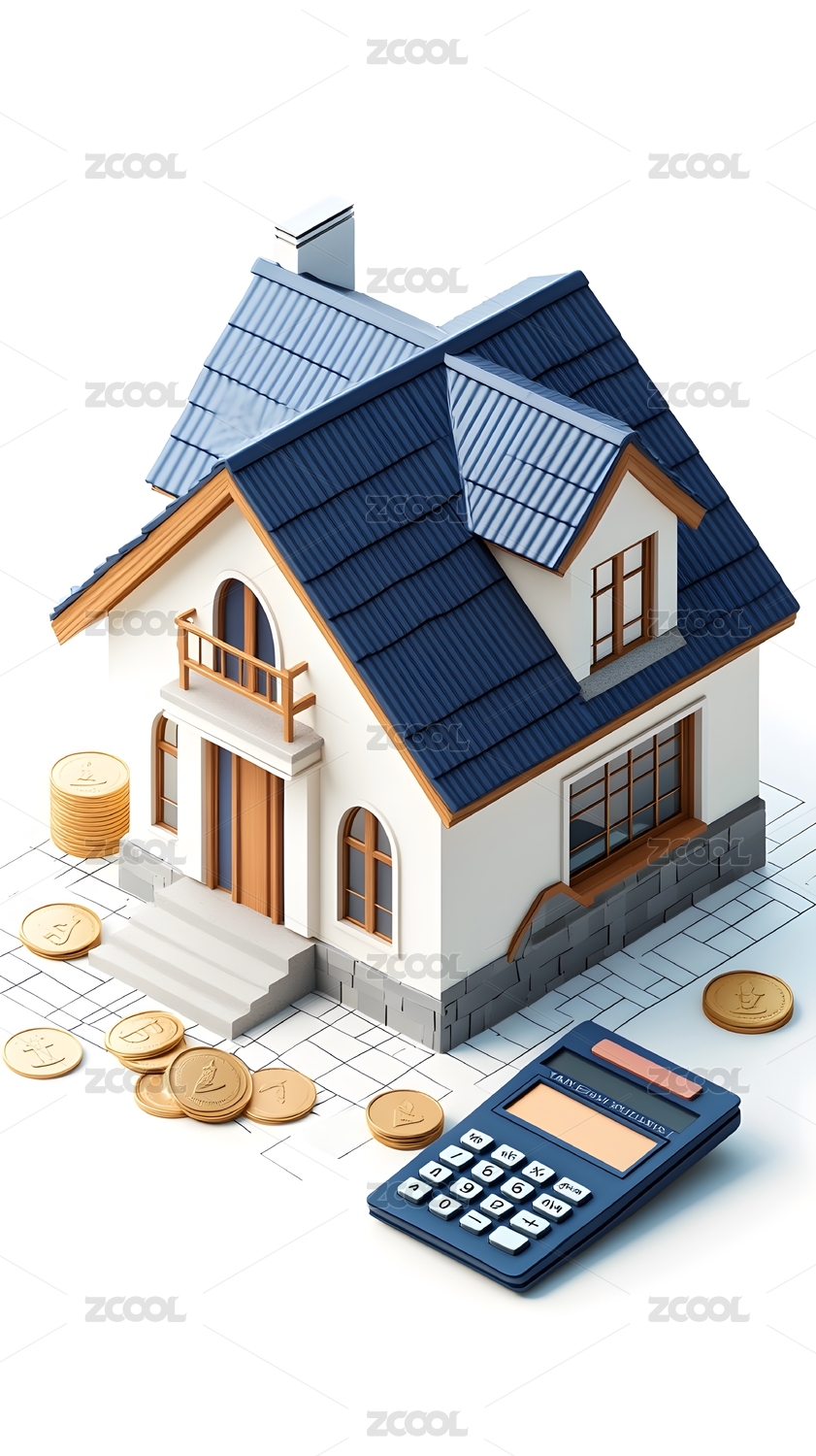 蓝白房屋模型与金币等物品伴随账簿摆放