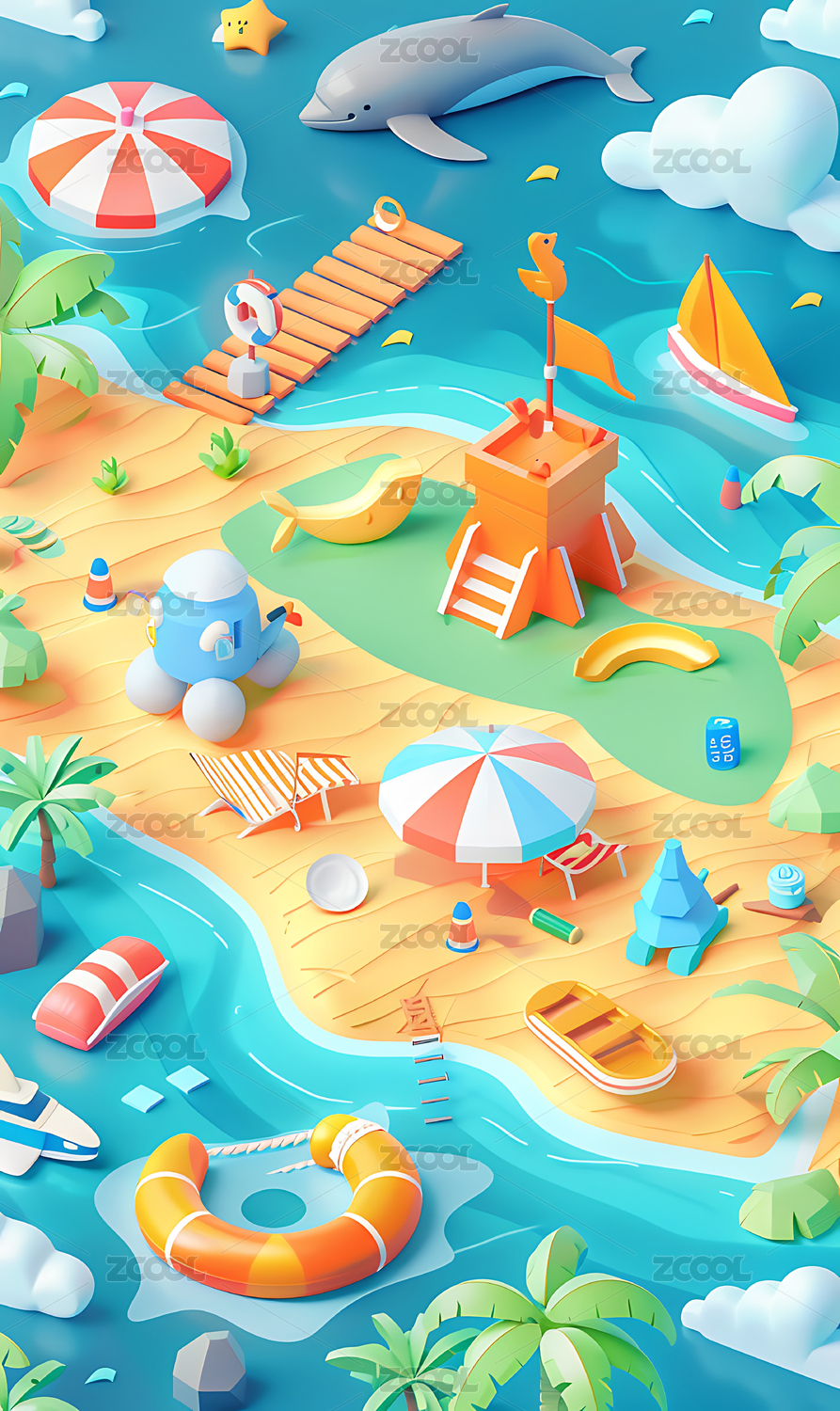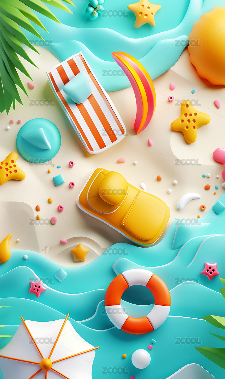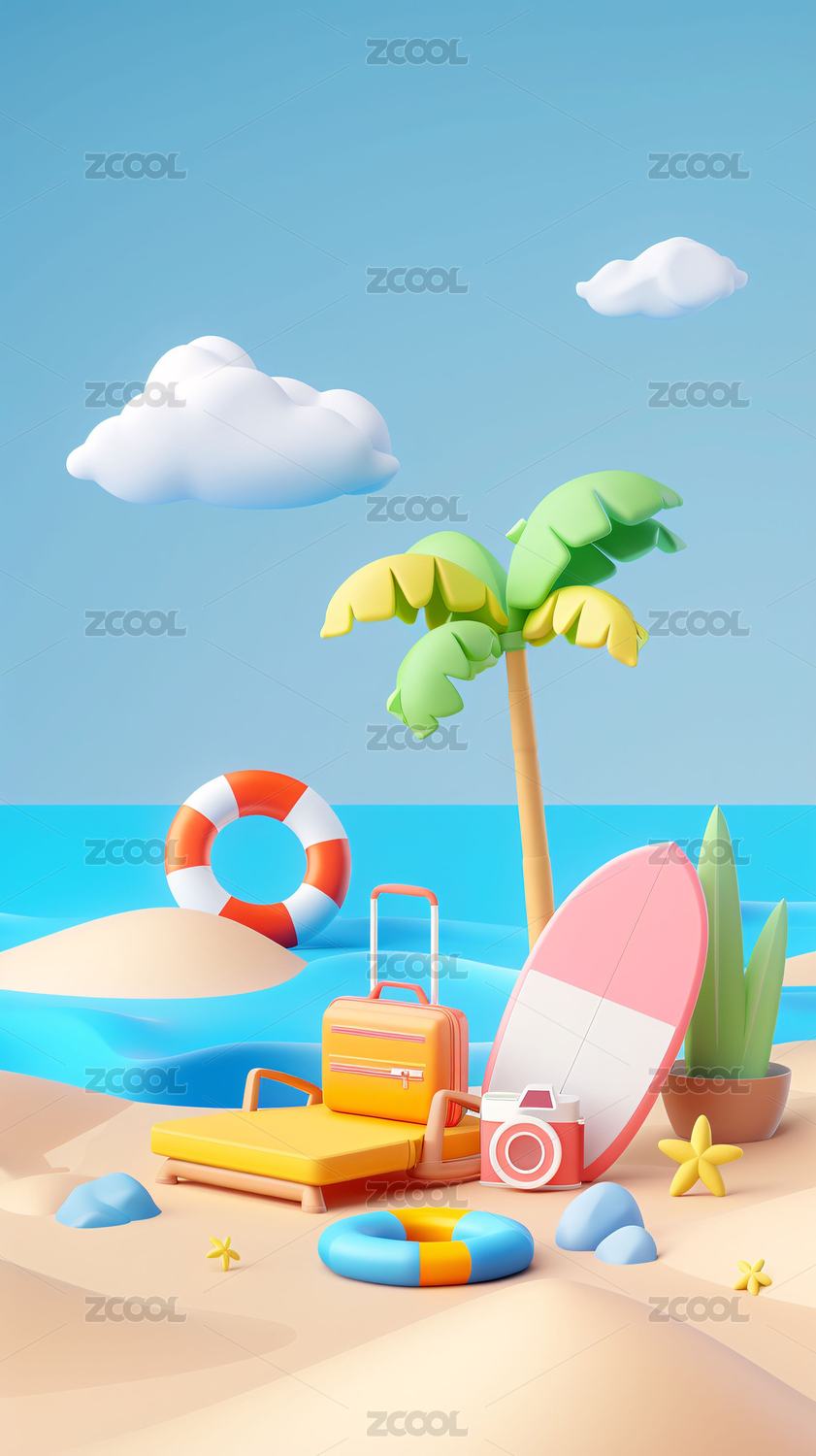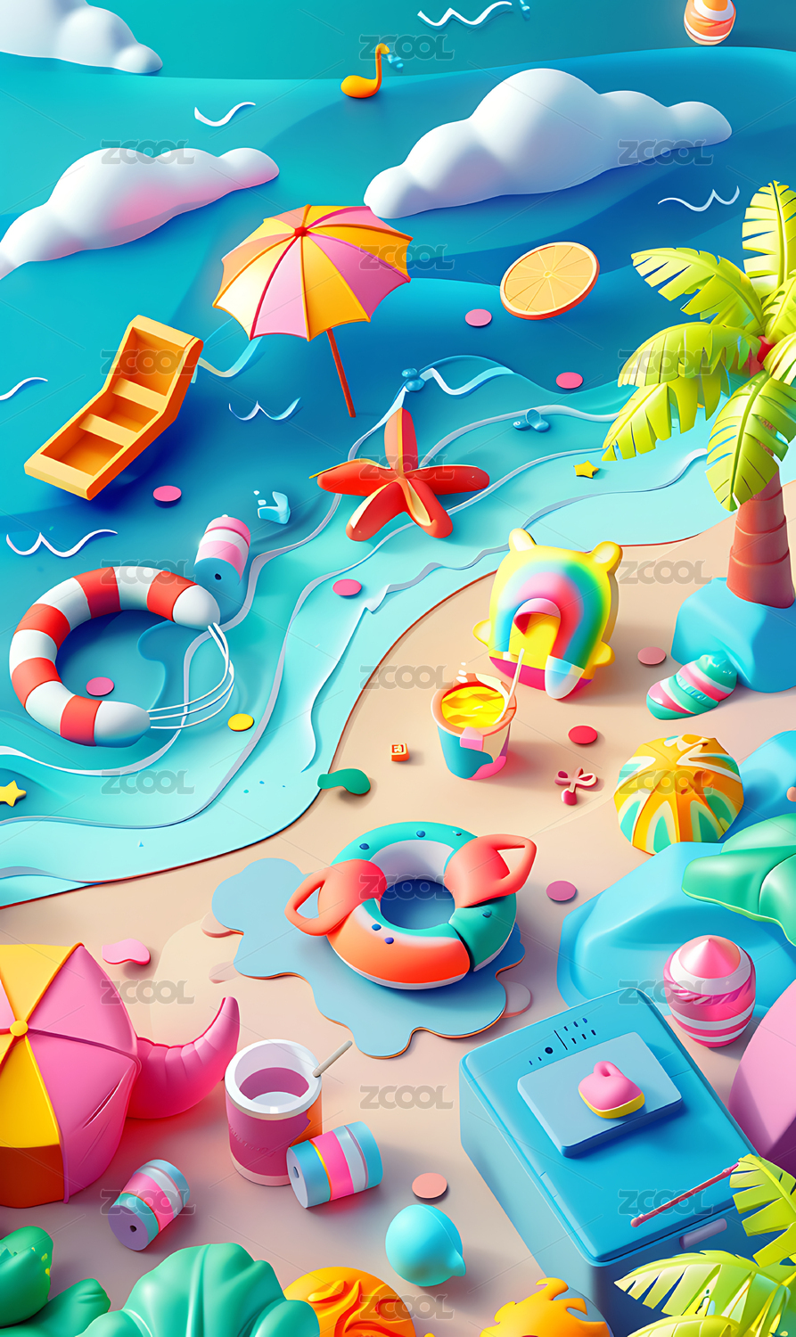 梦幻夏日海滩场景