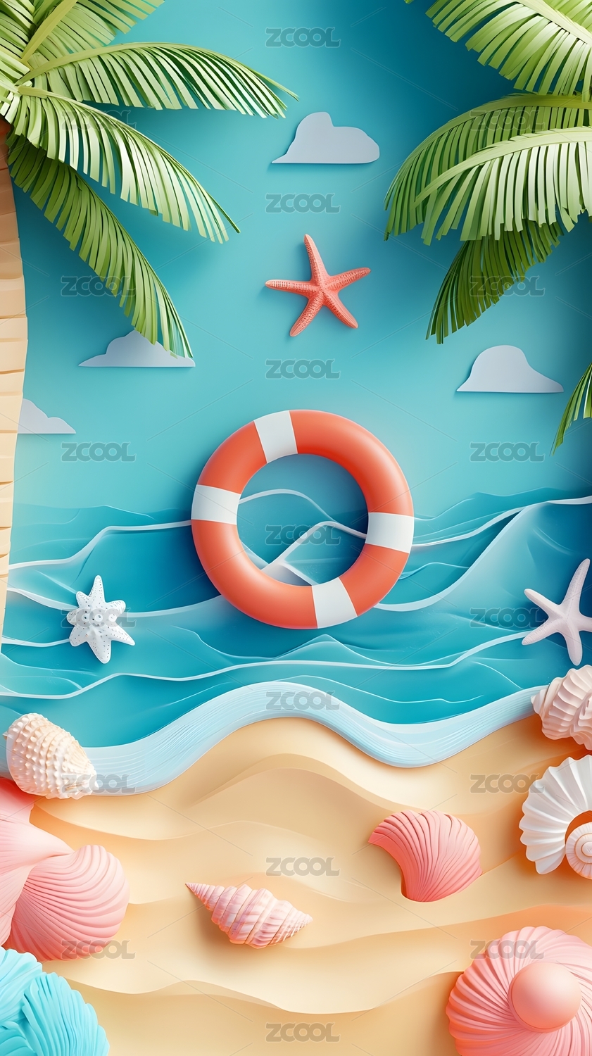 剪纸风格大海沙滩背景