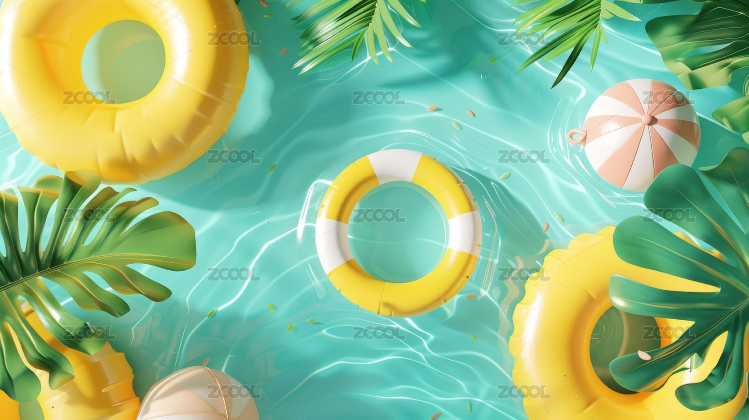 3D插图,夏日清凉泳池派对
