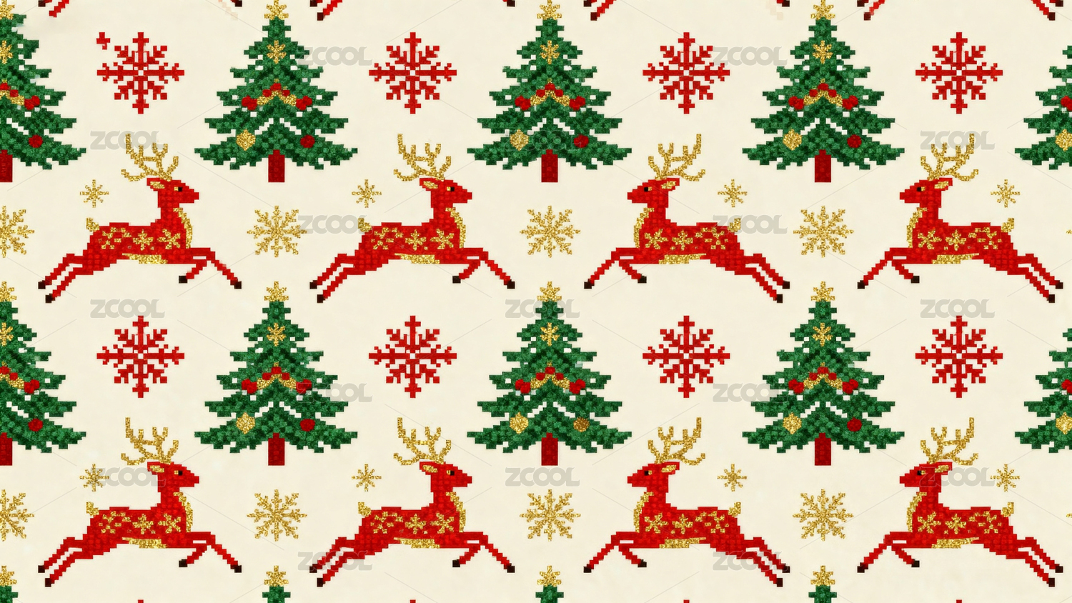 四方连续,麋鹿,印花,圣诞节,圣诞树,卡通,面料