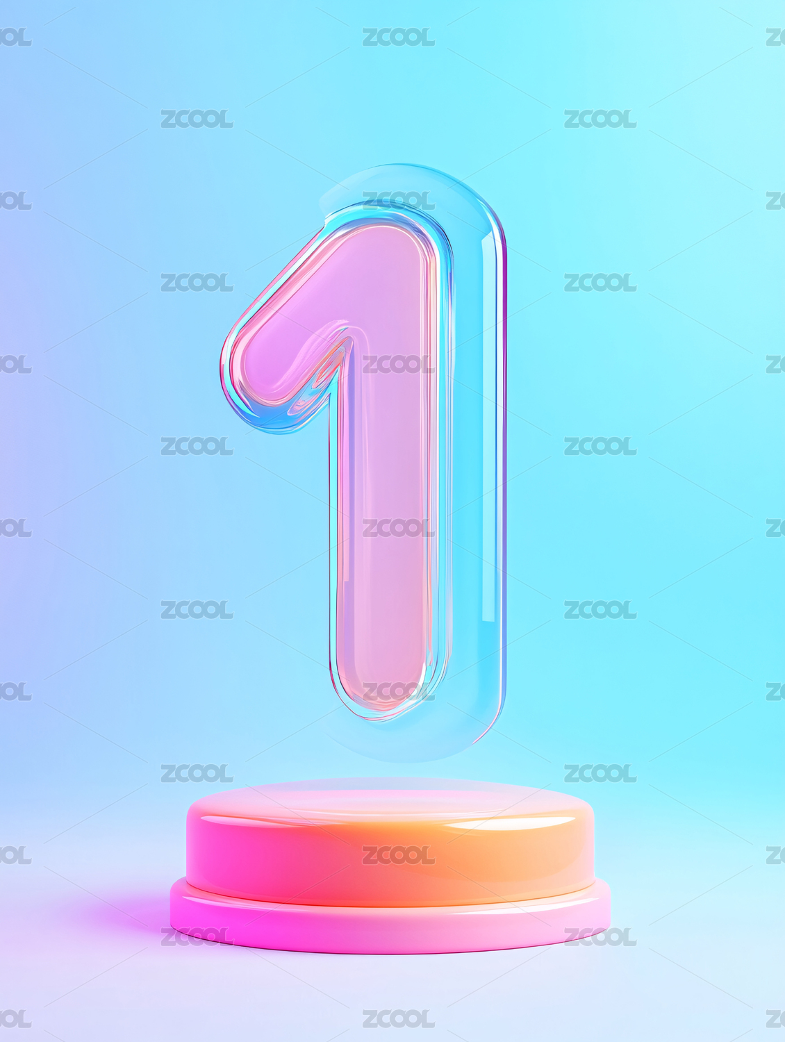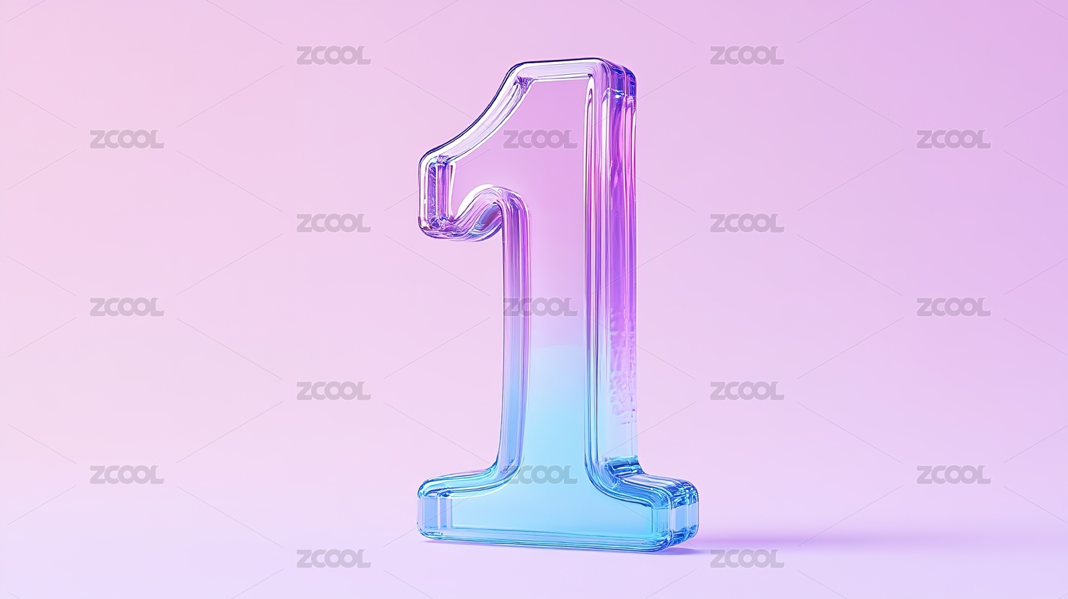 3D紫色渐变玻璃质感数字1