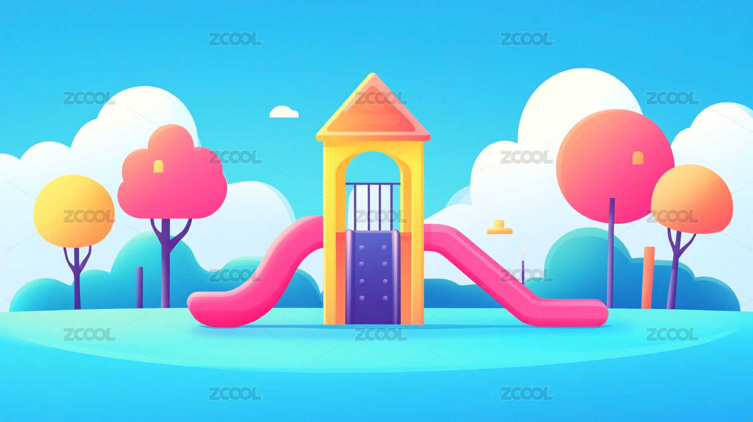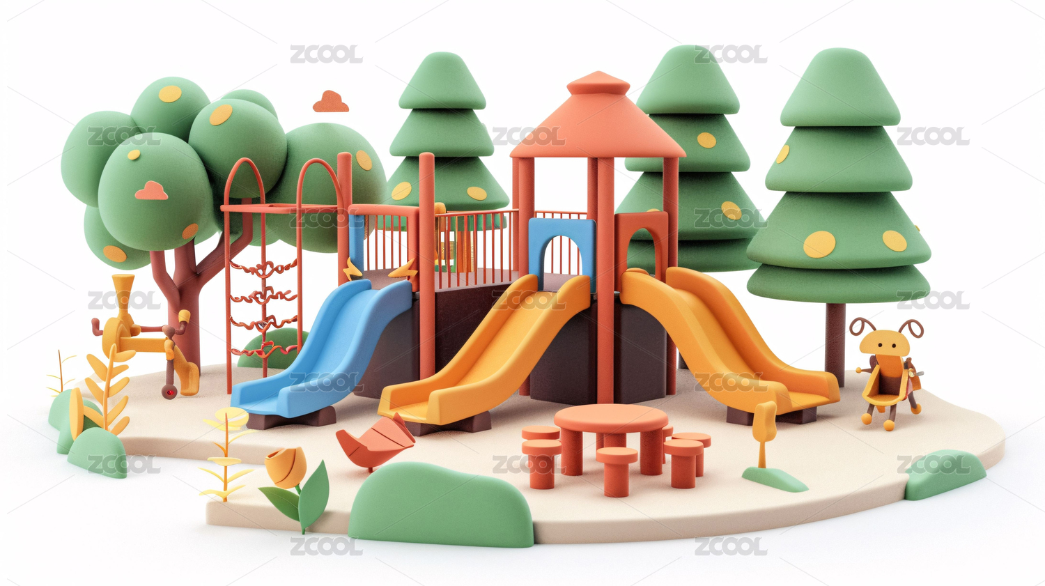 卡通风格的户外儿童游乐场