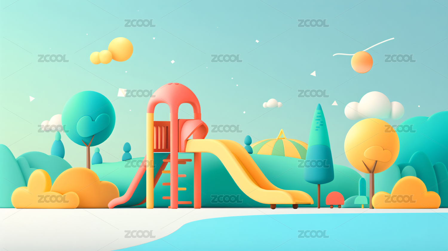 六一儿童节亲子乐园儿童游乐场童年3D插画