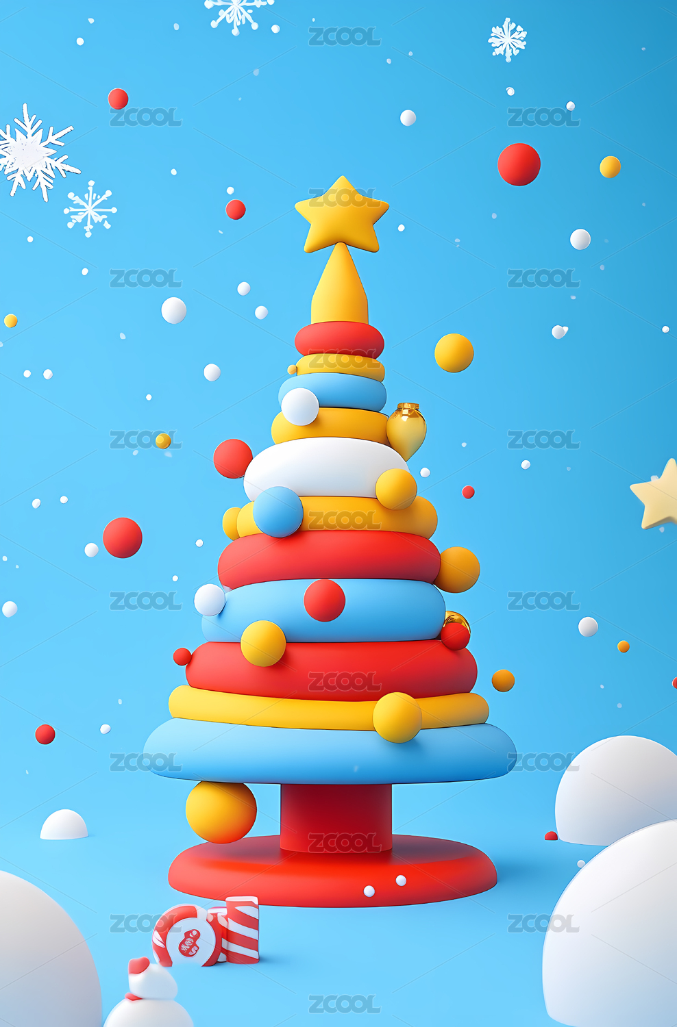 漂亮的3D卡通圣诞树