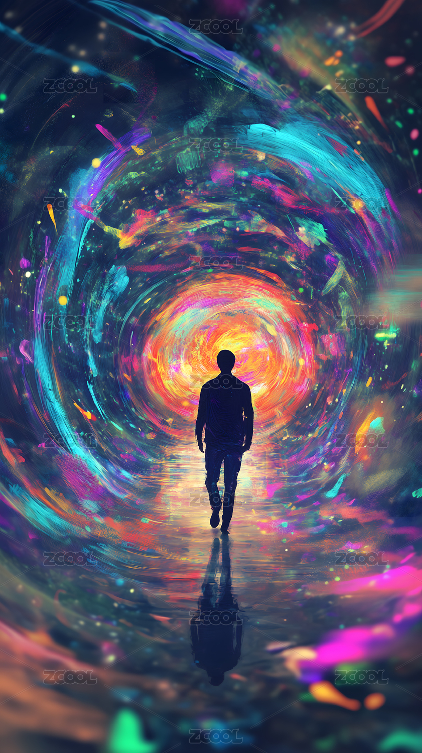 未来派漩涡隧道场景抽象插画海报背景