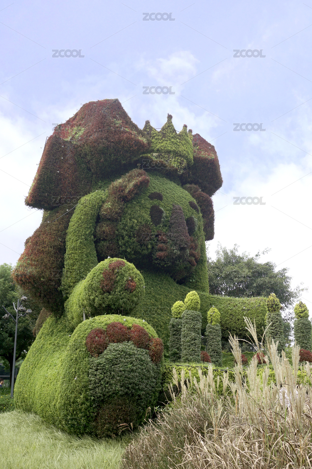 中国四川成都锦绣安仁奇境花园绿植雕塑考拉