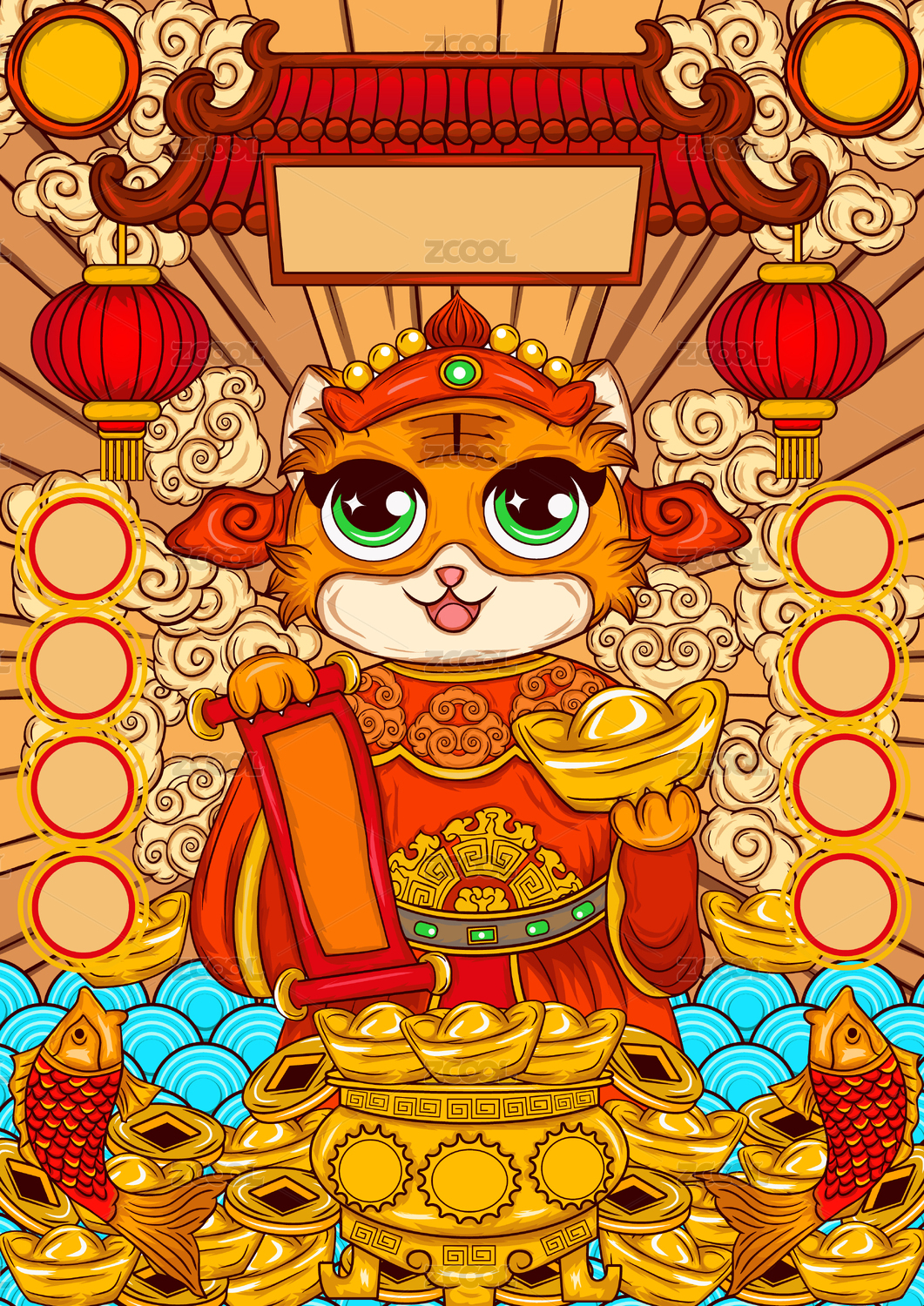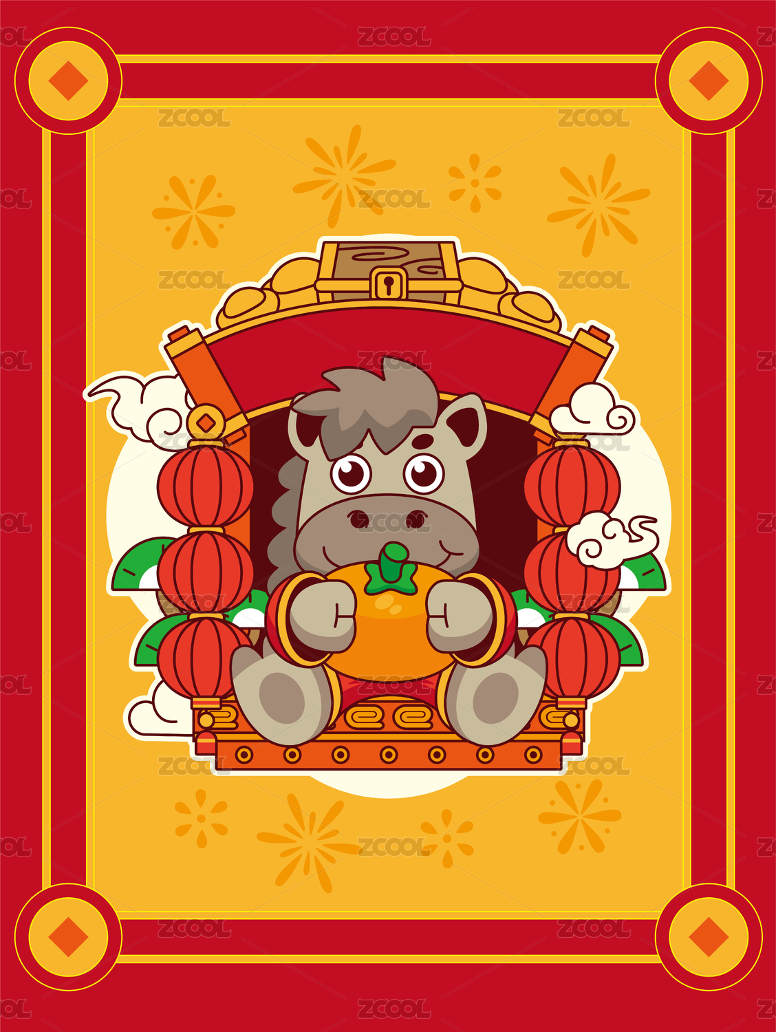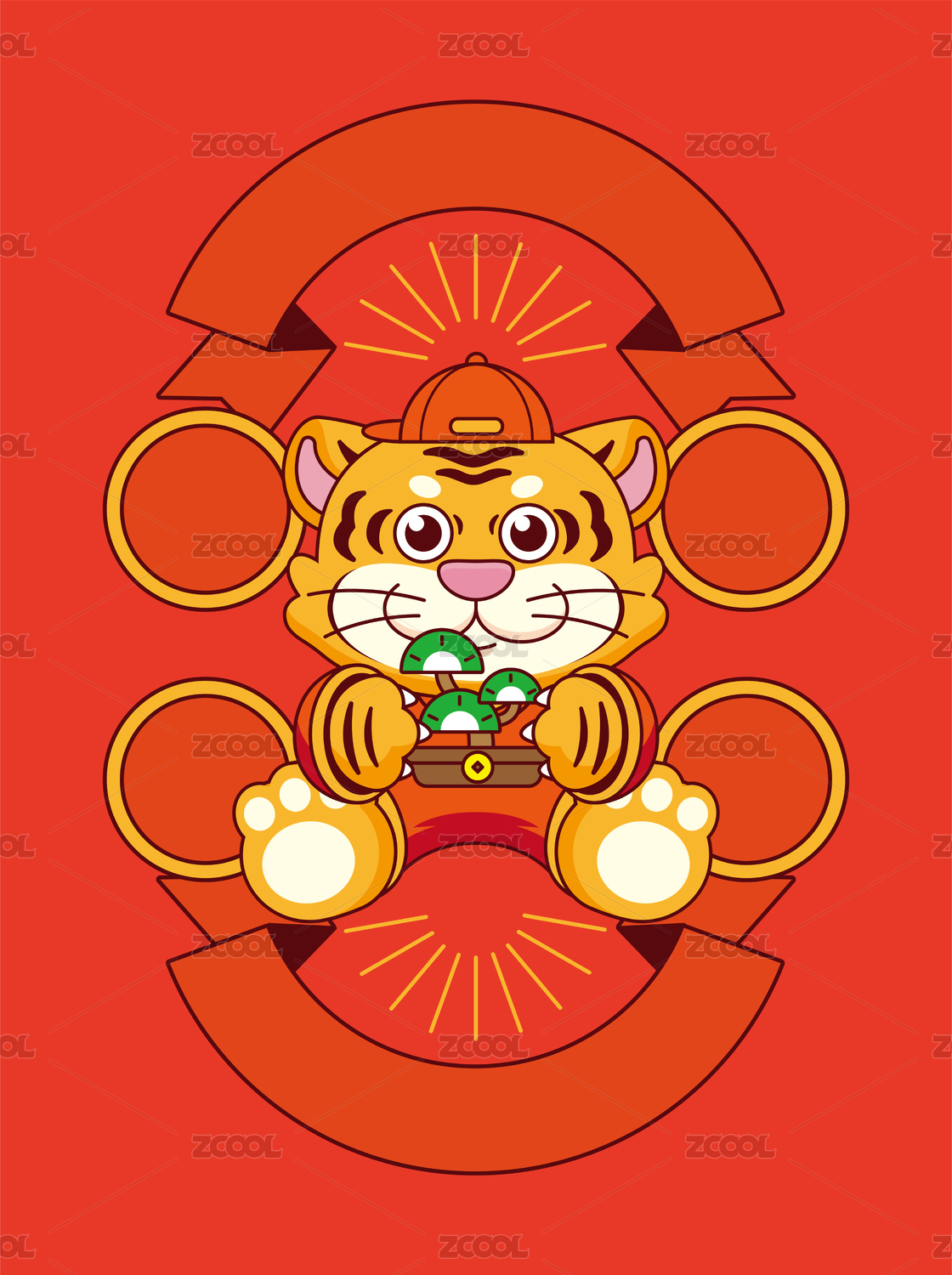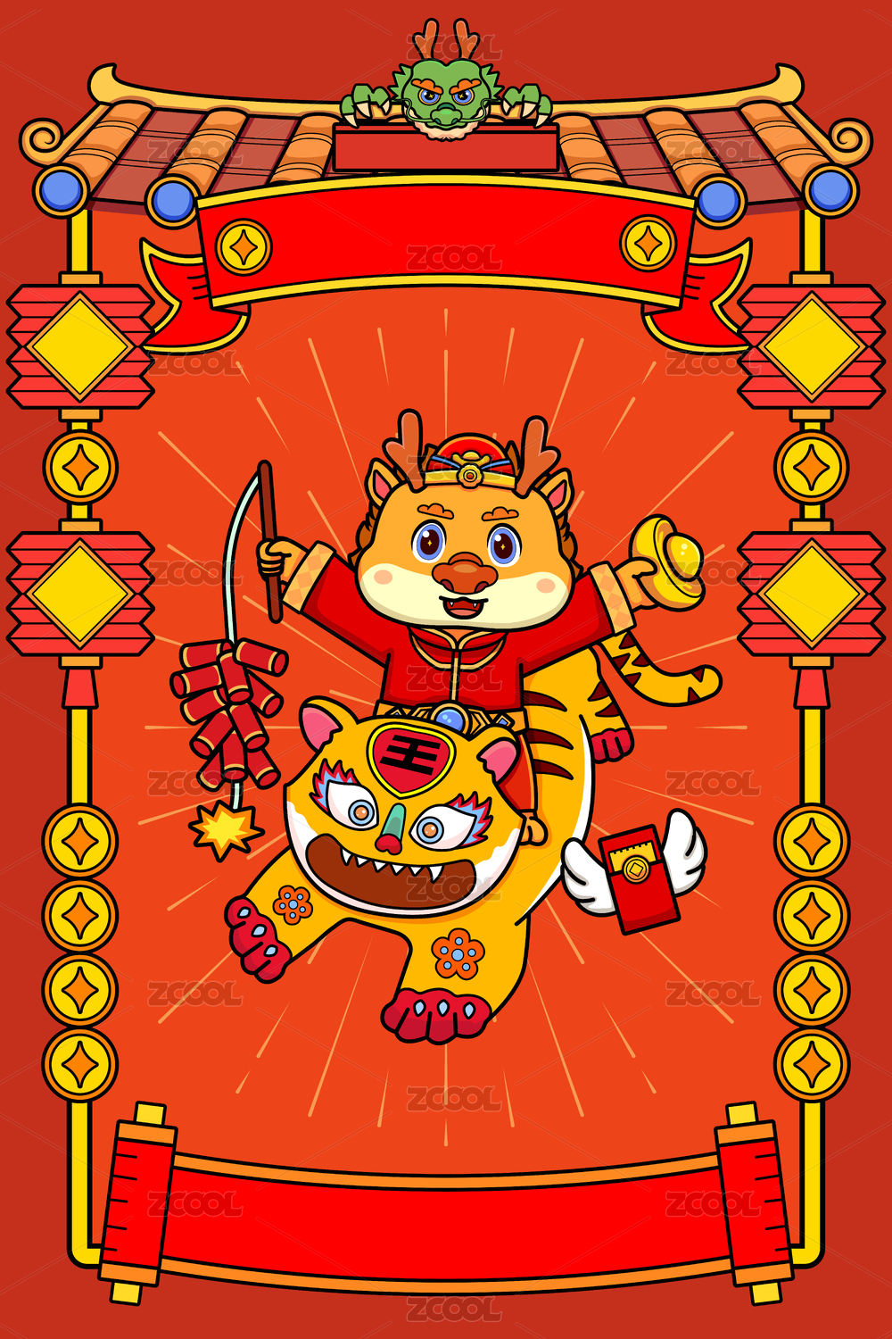 国潮风格,新年,节日气氛,图案设计,潮流形象,十二生肖,简约,喜庆,中国风,卡通风格