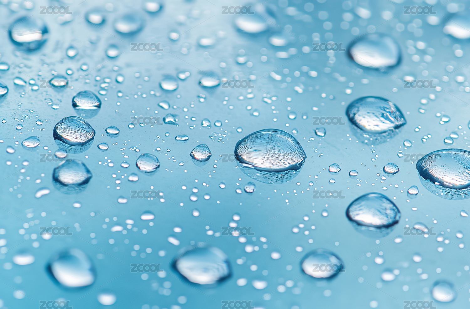 晶莹剔透的水珠蓝色渐变背景色彩