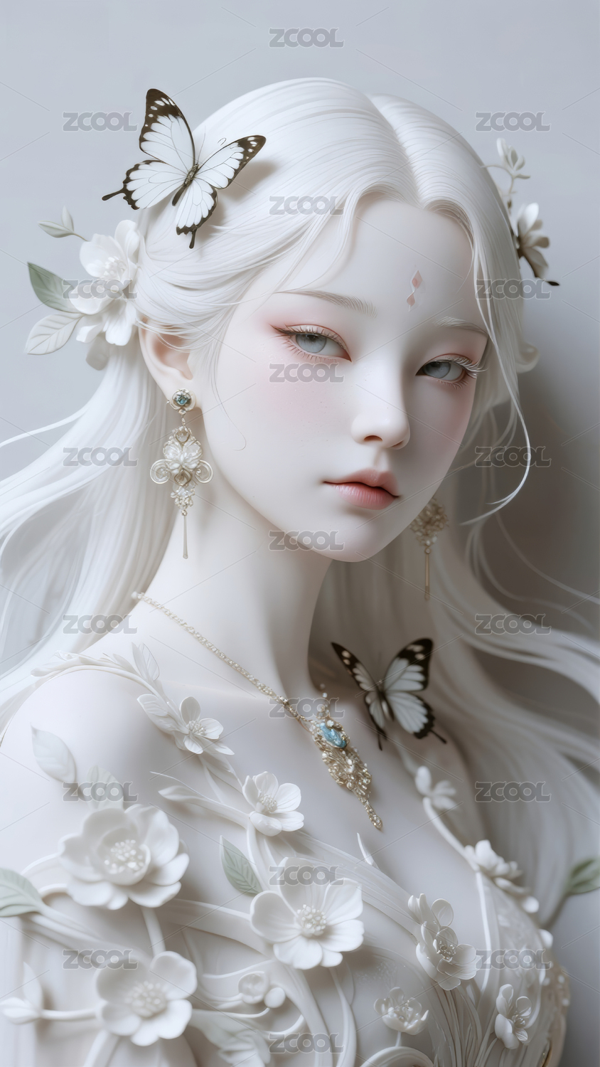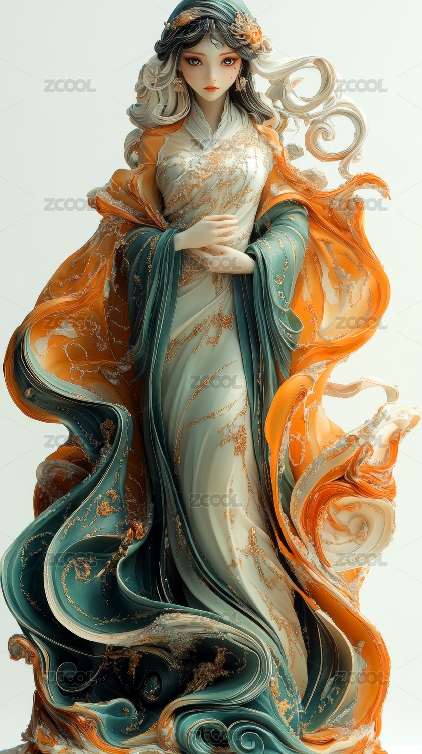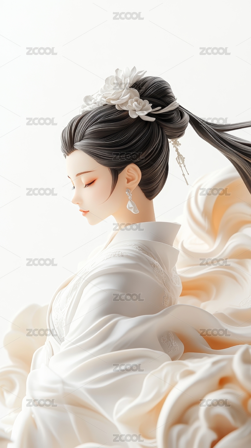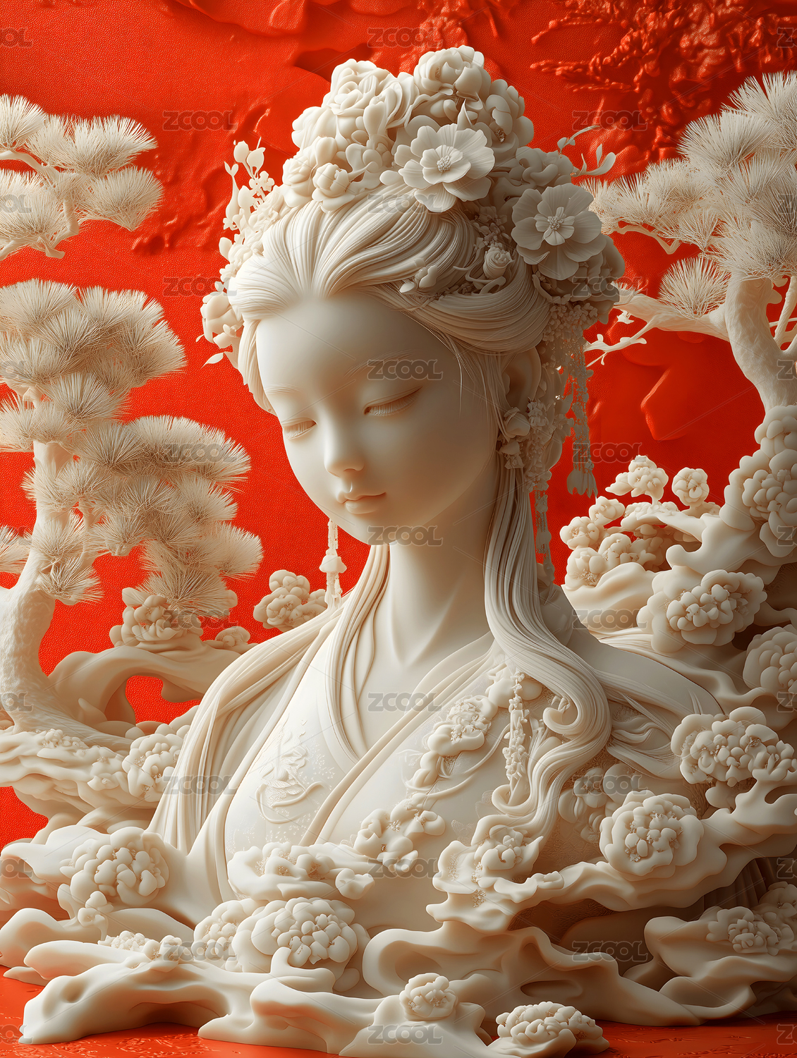 新中式,美女,仙女,木雕,国画,象牙雕,玉雕,中国画风格,雕刻,浮雕