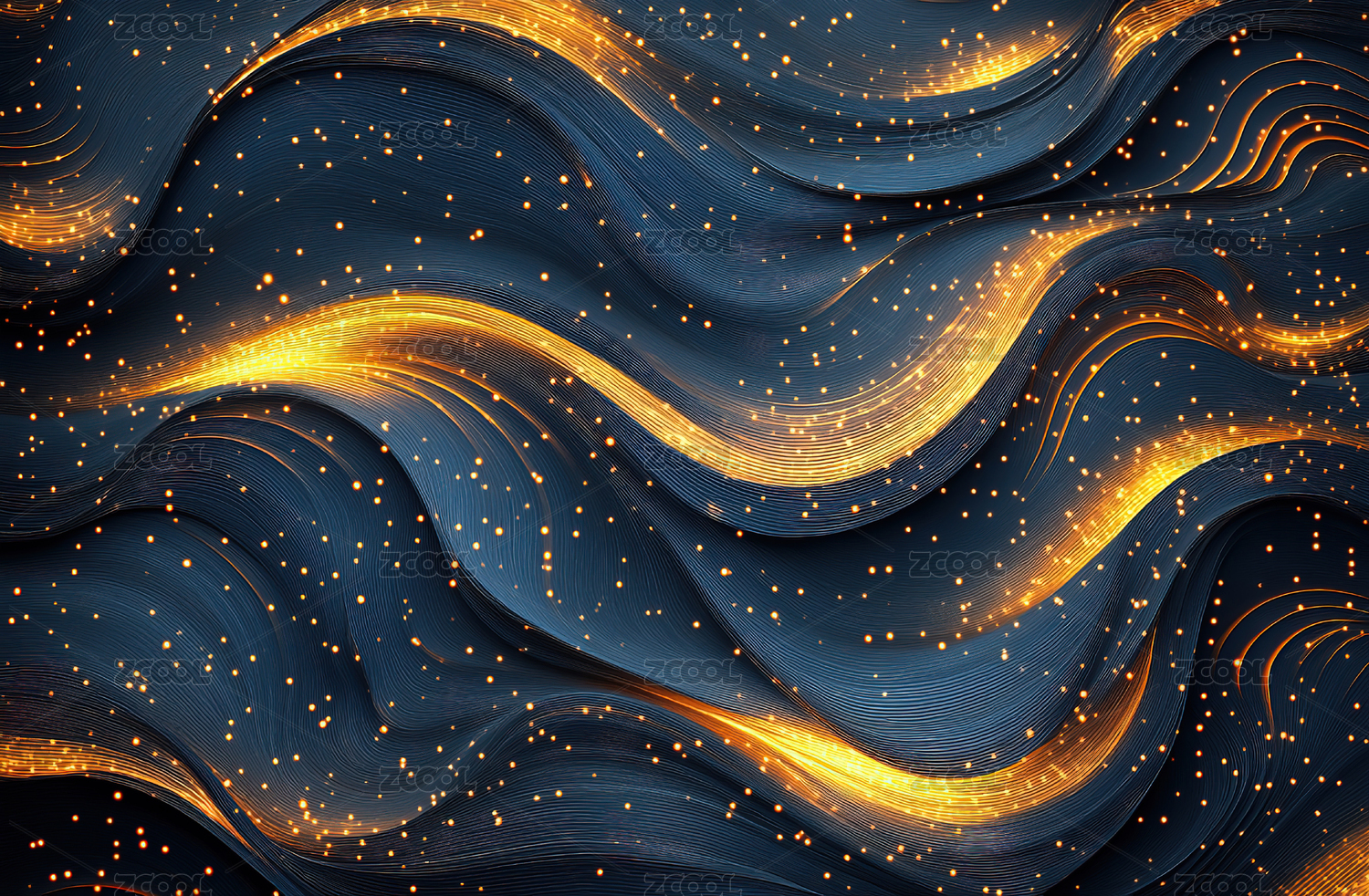 深蓝背景金色波浪光斑