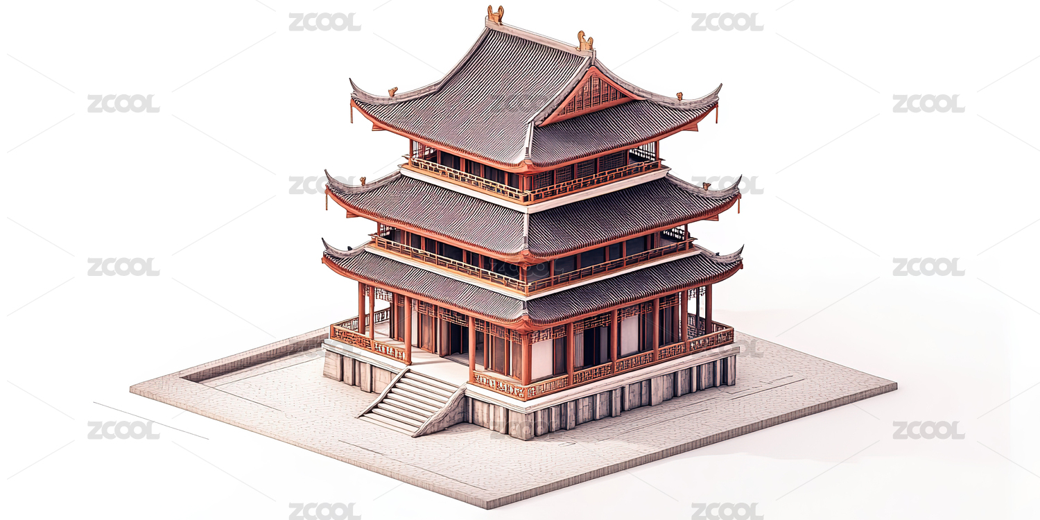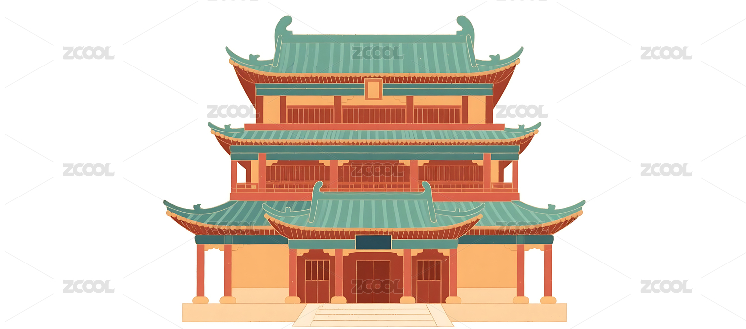 中国湖南长沙岳麓书院爱晚亭建筑矢量插画