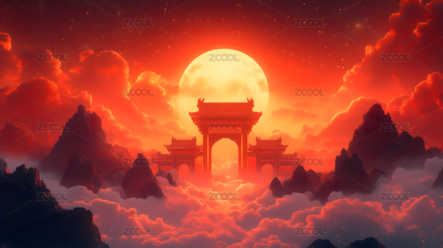 中国风天庭天宫建筑