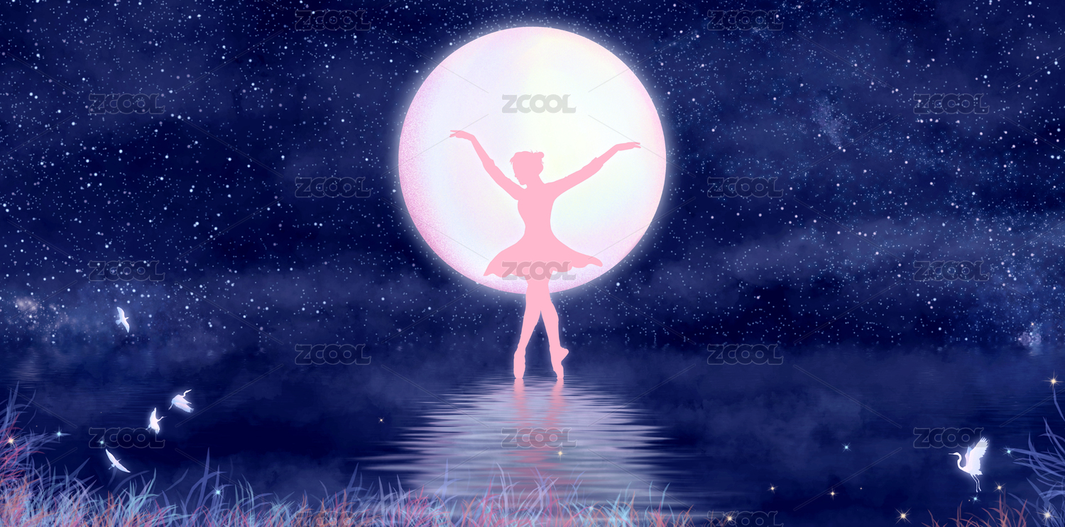 森林里月亮下一位少女在跳芭蕾舞插画背景