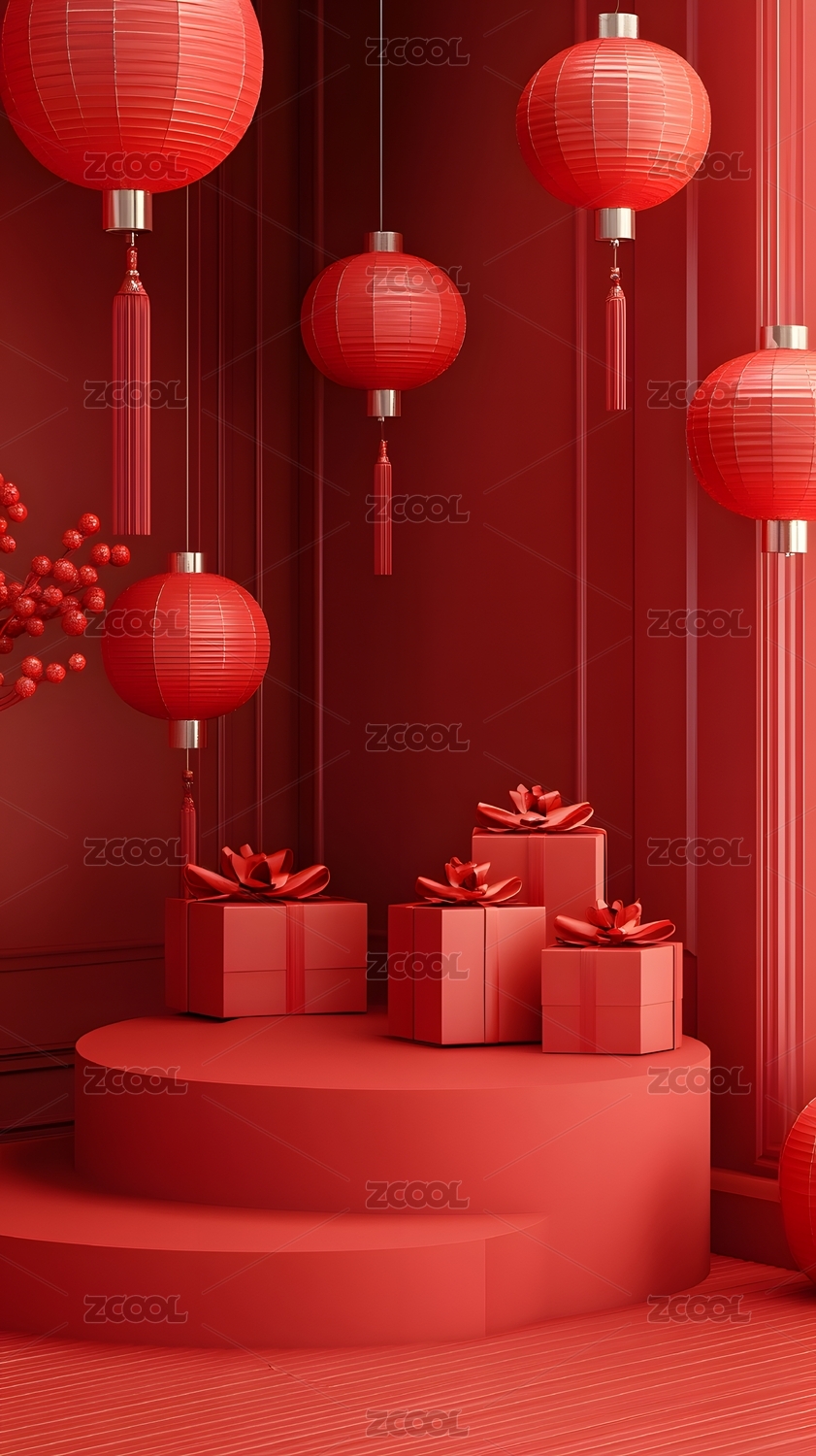 新年春节喜庆红色电商节日场景背景