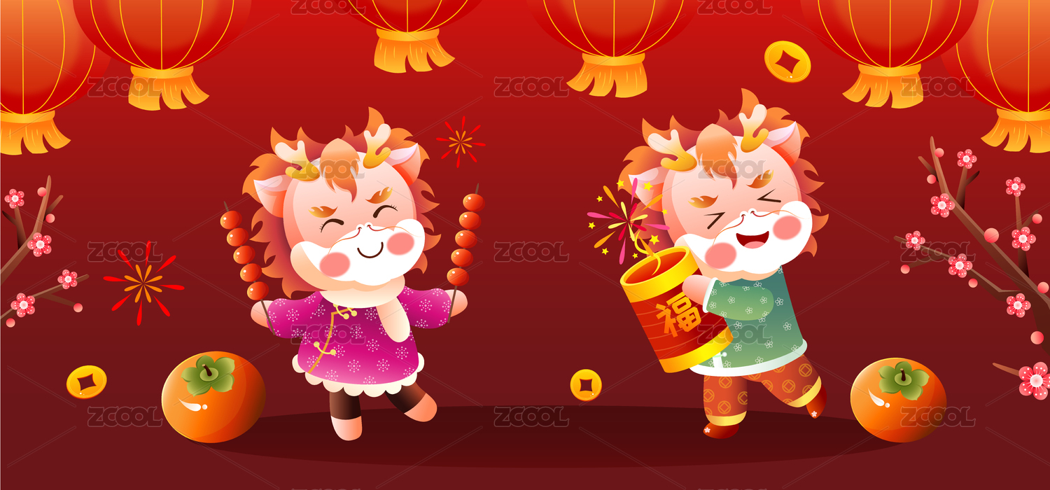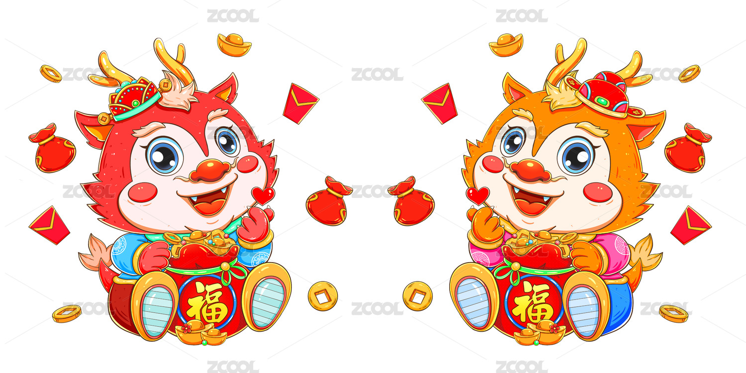国潮,新年,节日,春节,喜庆,龙年,龙,2024,插画,贴纸