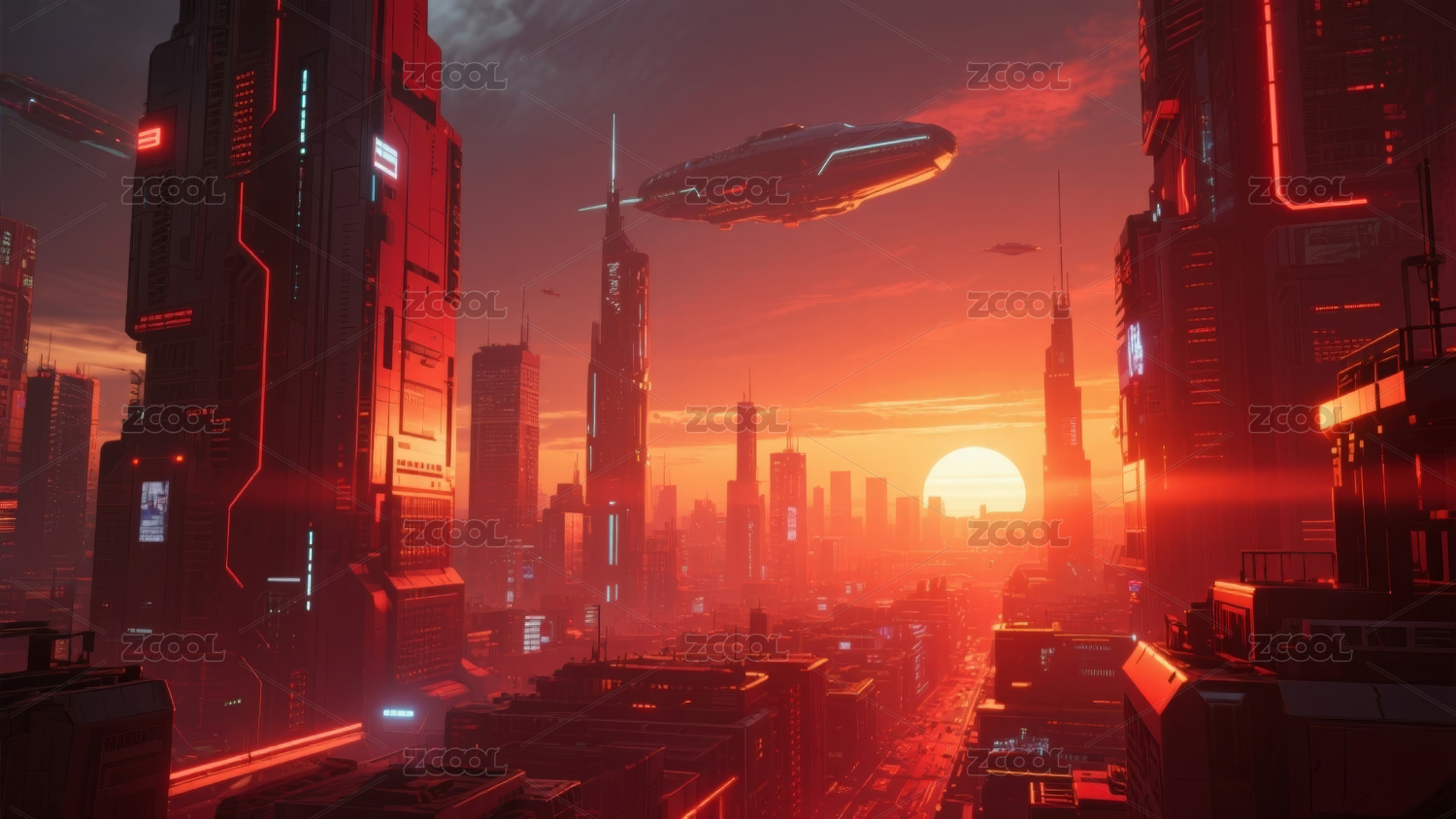 未来都市夕阳美景