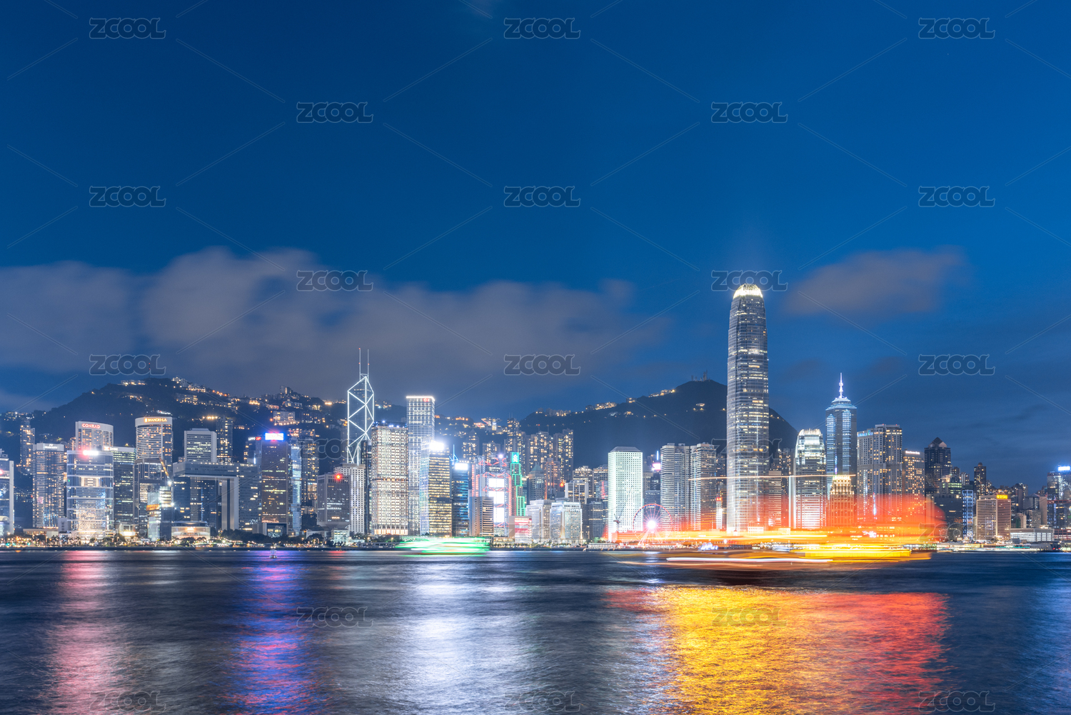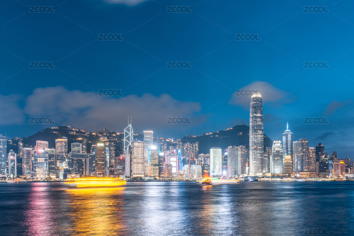 维多利亚港,城市,建筑,摩天大楼,鸟瞰,户外,夜景,现代,地标,无云
