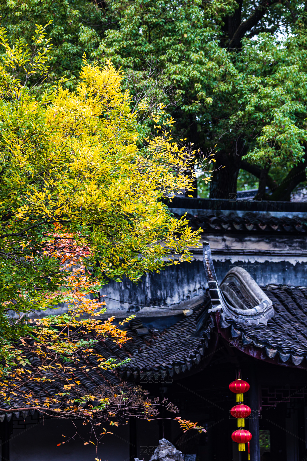 苏州虎丘风景名胜区冷香阁楼梯秋景