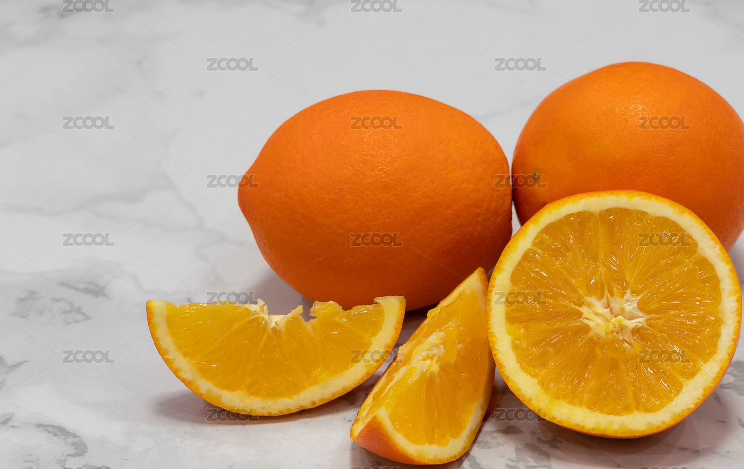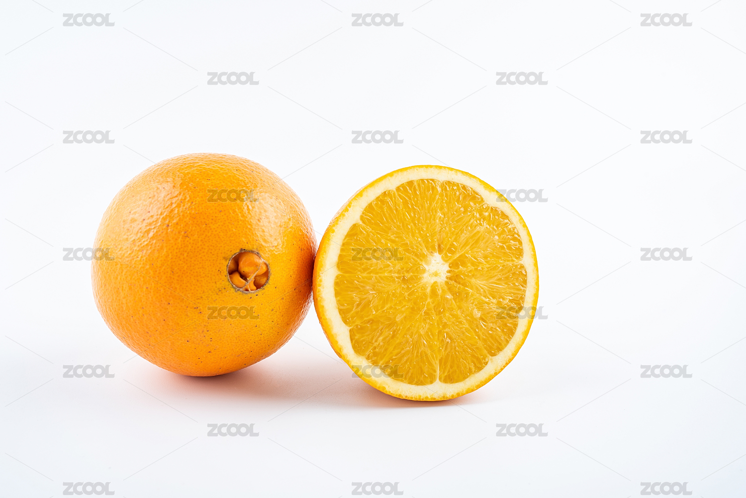白背景上一个新鲜水果赣南脐橙和果肉切片