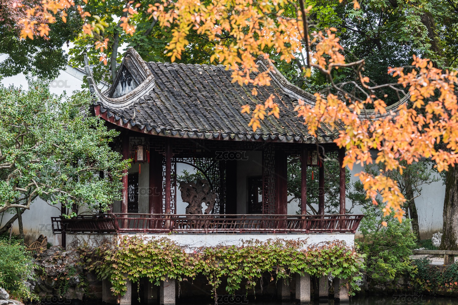 苏州园林秋天庭院景观