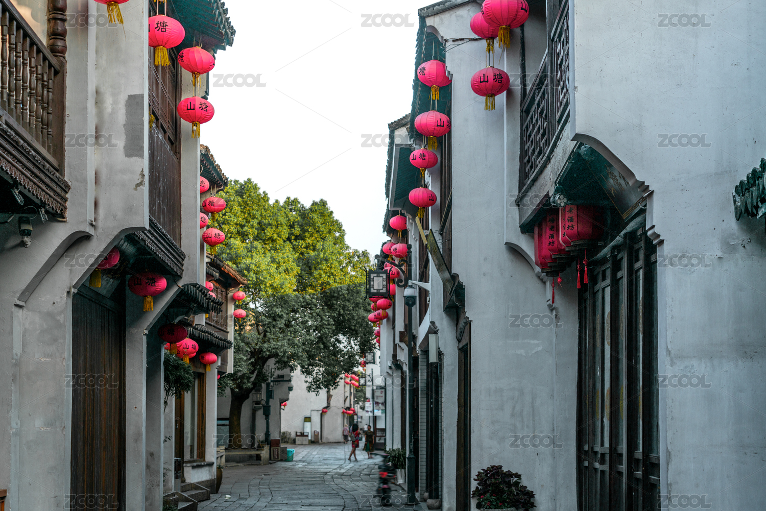 被照亮的,传统,春节,灯,灯光,房子,古迹,古建筑,古街,古镇