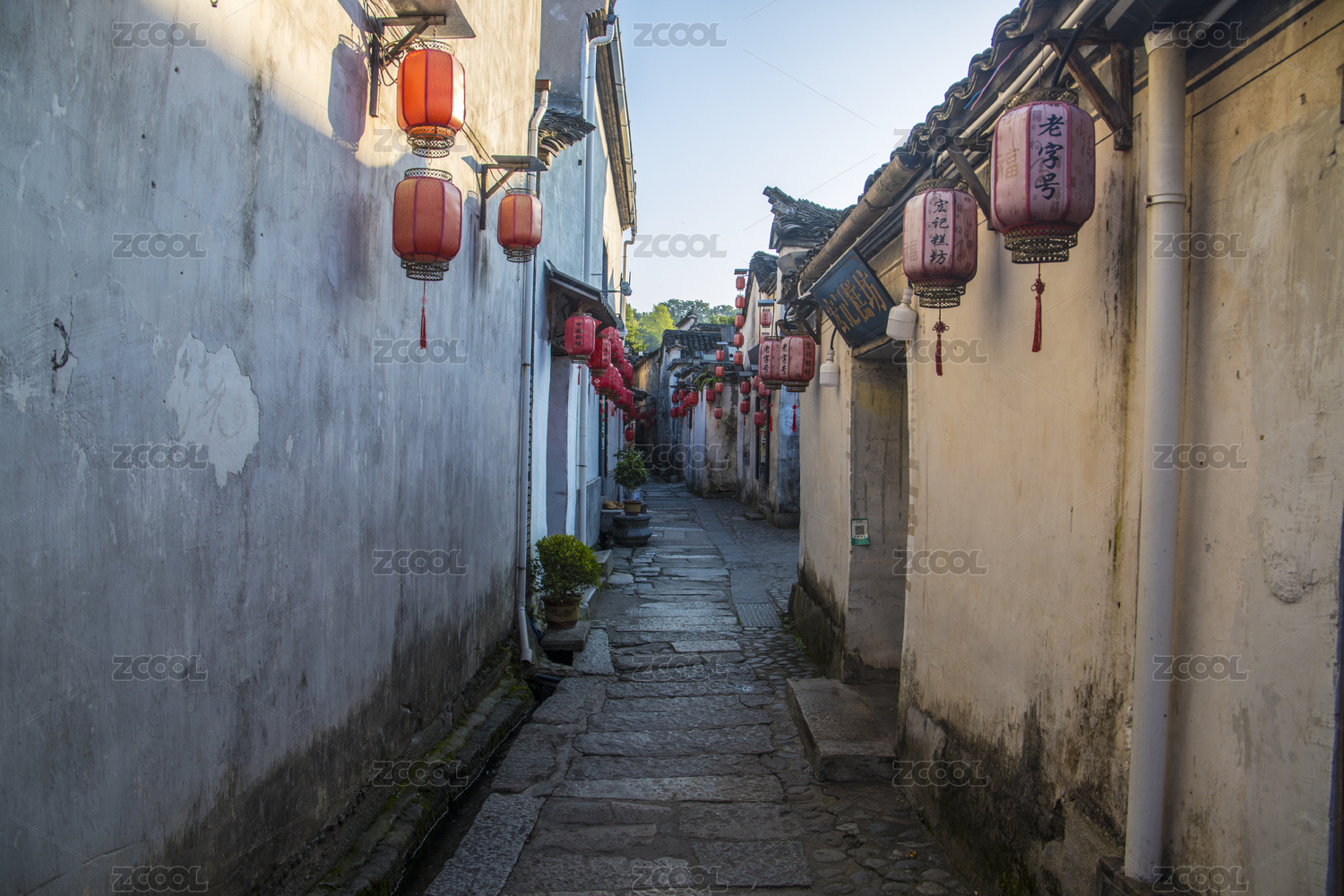 霍童古镇中一条挂着红灯笼的老旧小巷子
