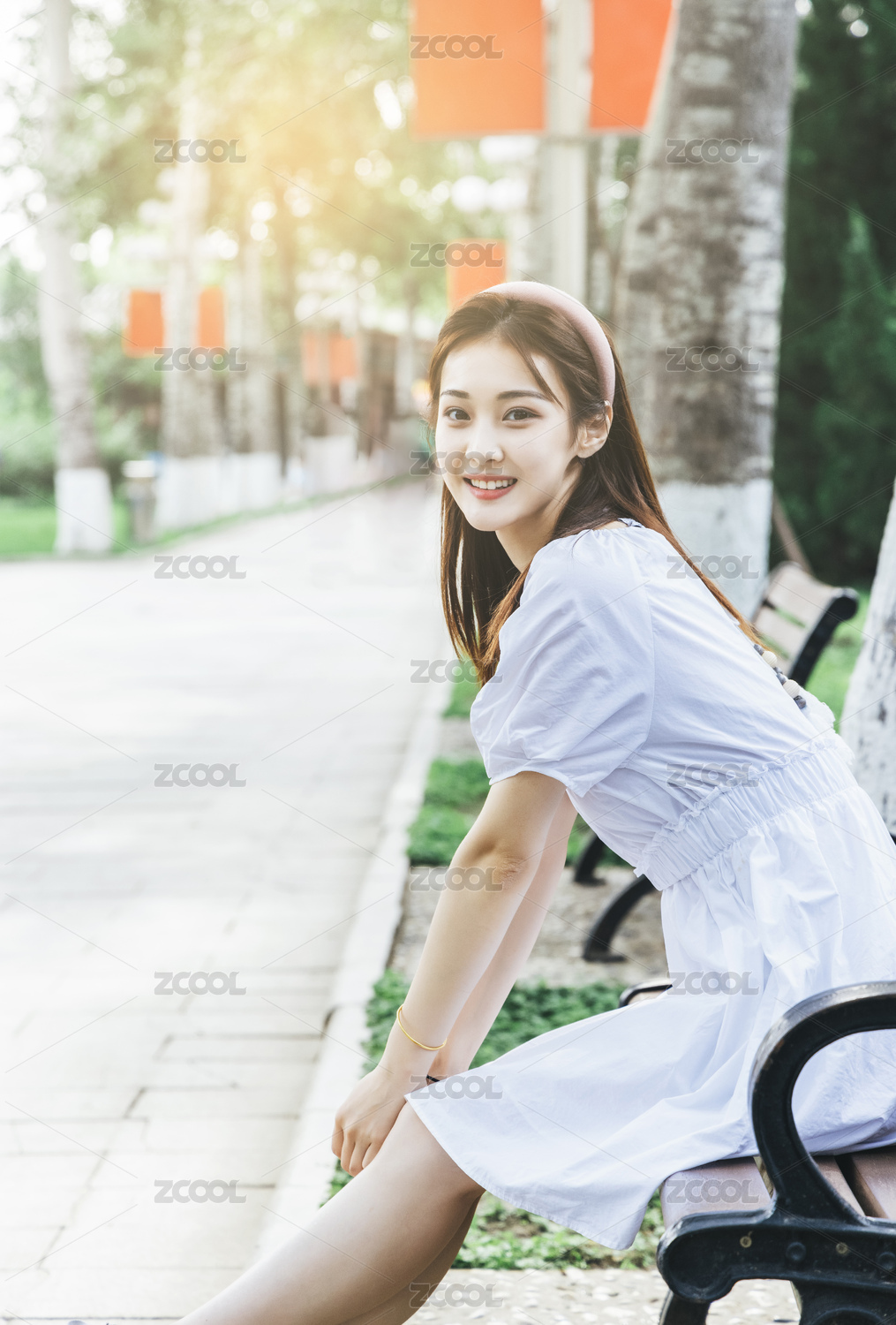 穿着白色连衣裙在公园游玩的亚洲女孩