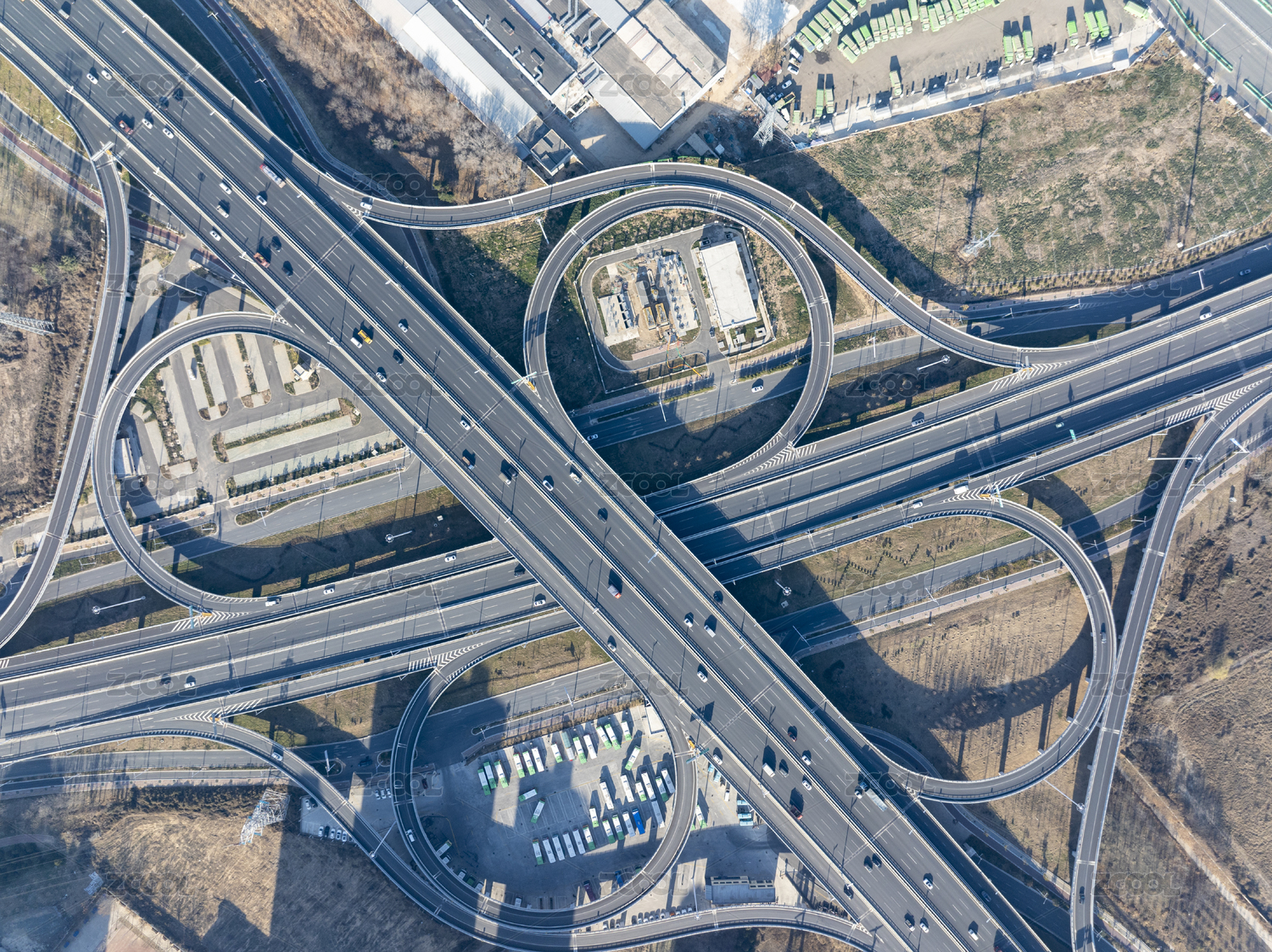 中国黑龙江哈尔滨三环学府立交桥夜景航拍