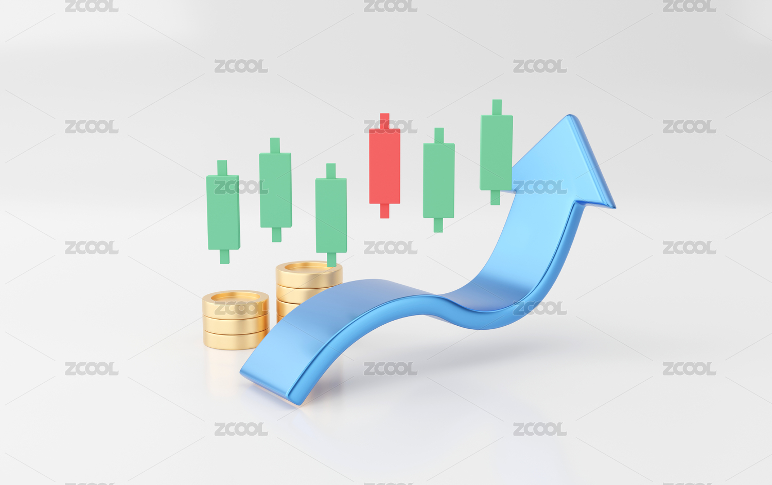 卡通金融股市上涨经济上升趋势概念3D渲染