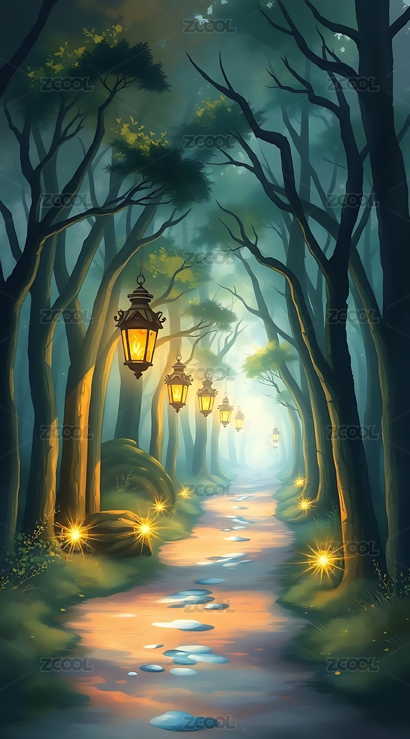 萤火虫森林的蓝色梦境 静谧森林的奇幻夜光