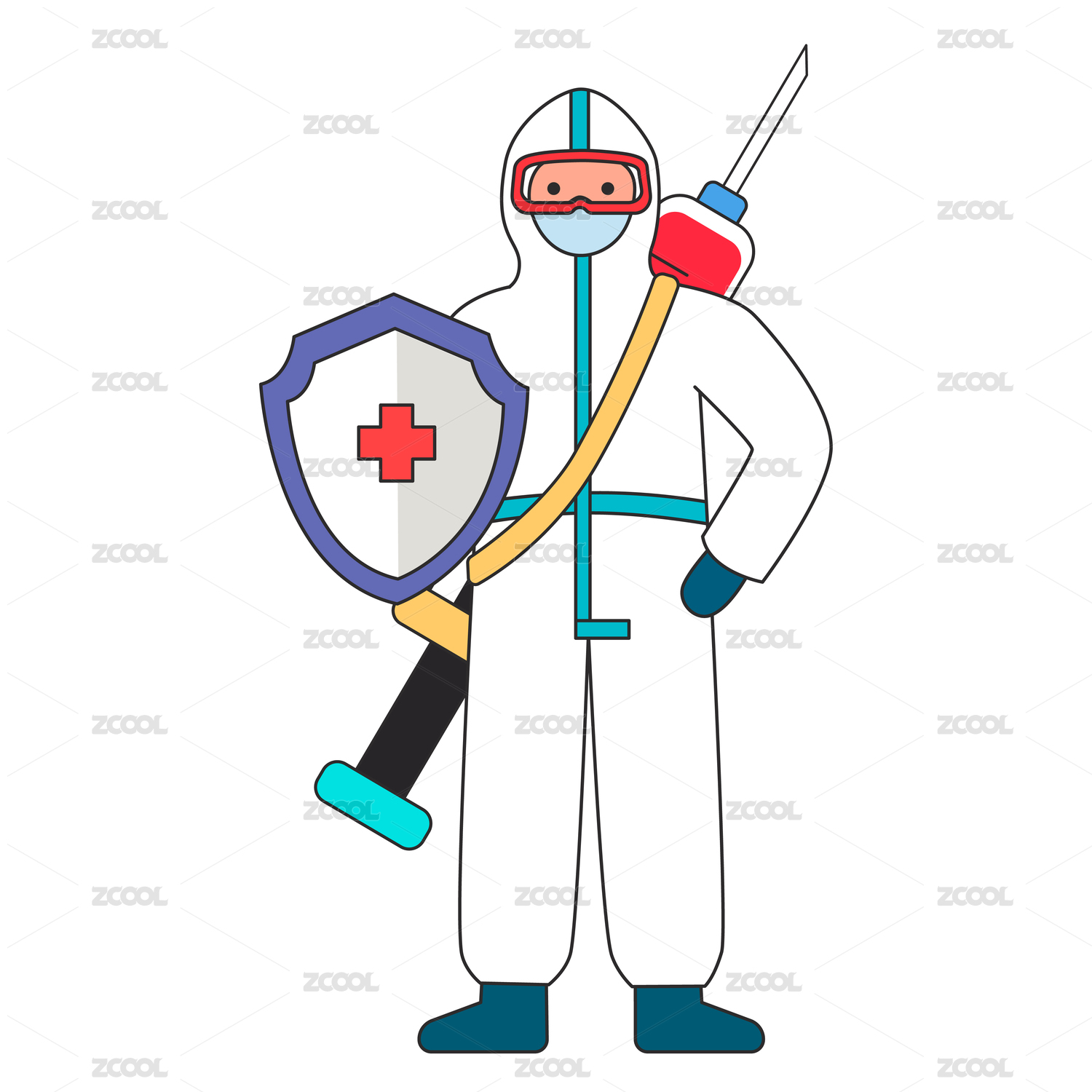 疫情防疫抗疫医卡通医护拿着盾牌疫苗