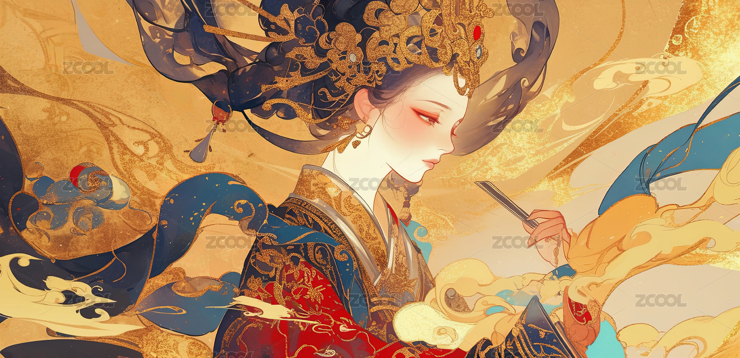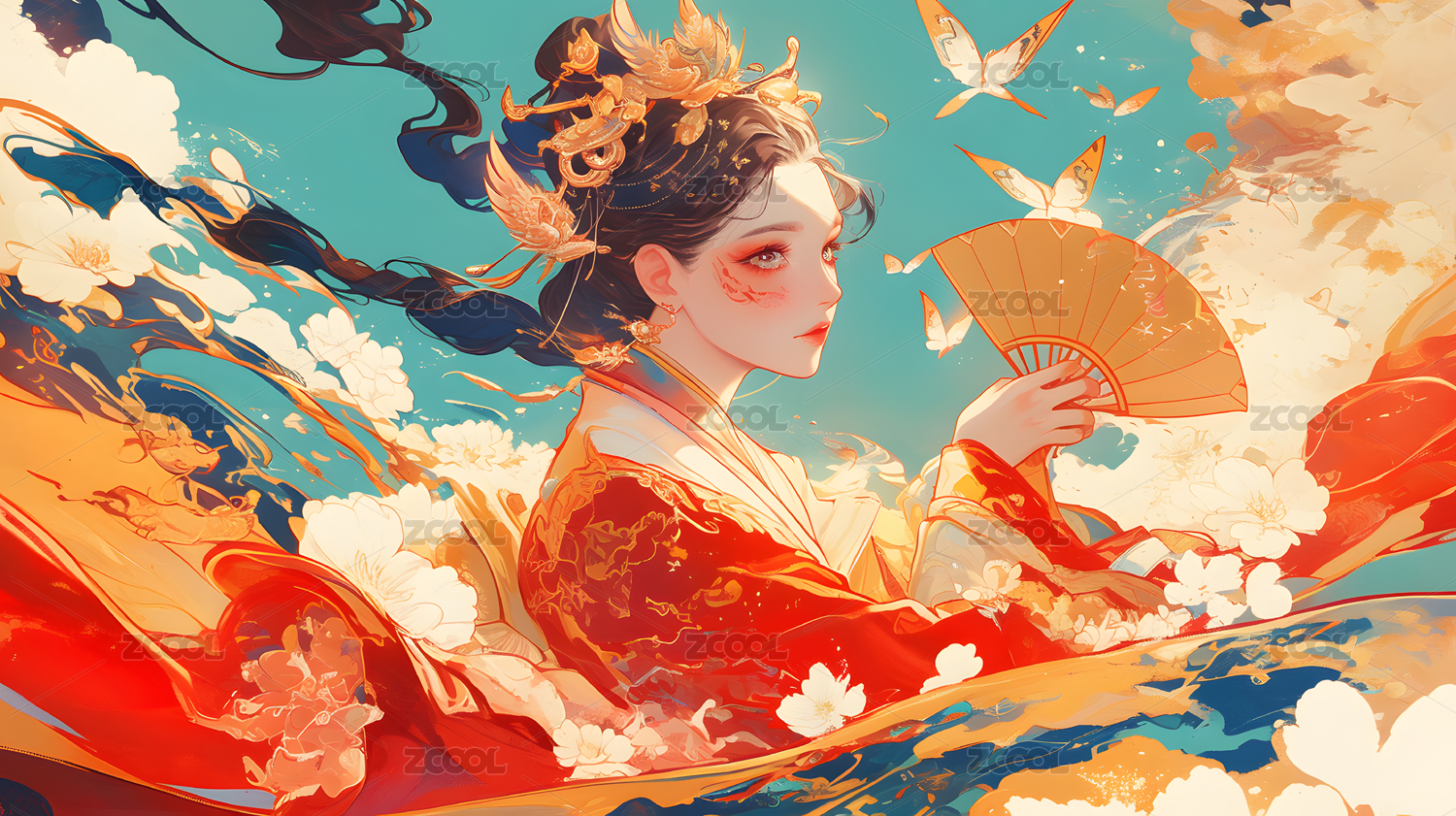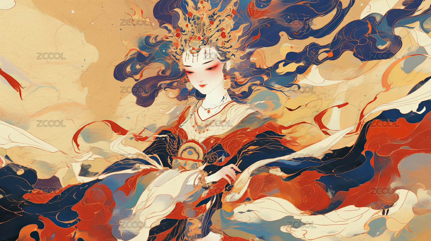 敦煌,祥云,红色,蓝色,金色,流畅,线条,古风,唯美,中国风