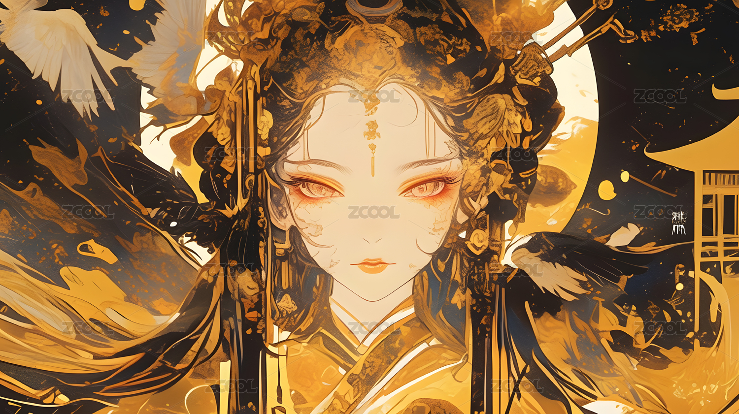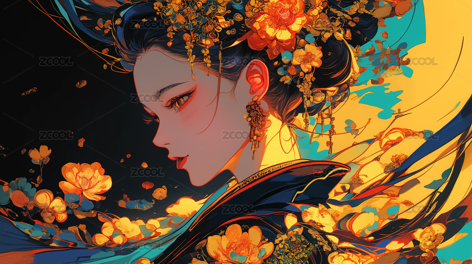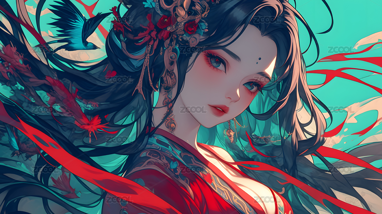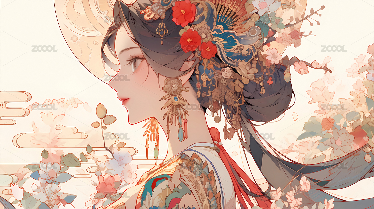 手绘卡通动漫唯美可爱的中国古风古装女孩插