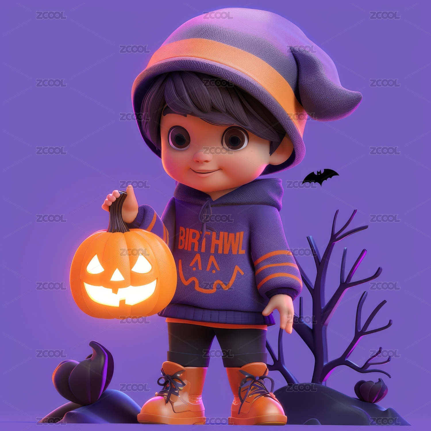 卡通,可爱,节日,节气,万圣节,拿着,南瓜,南瓜灯,小孩子,男孩