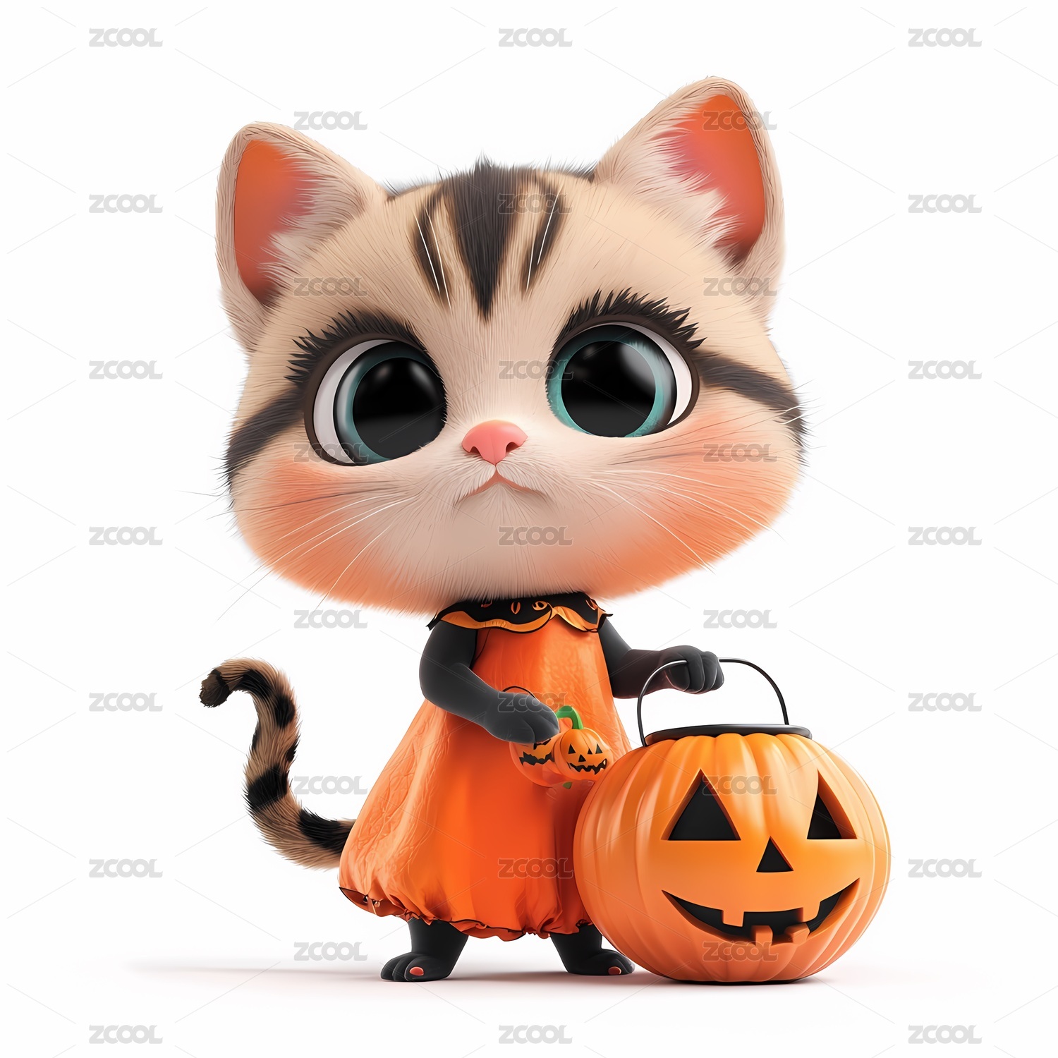 万圣节穿精灵服拿南瓜灯儿童节日装扮插画
