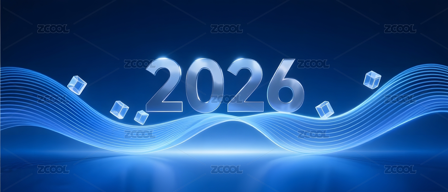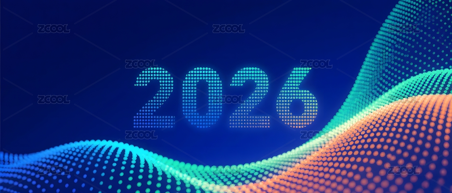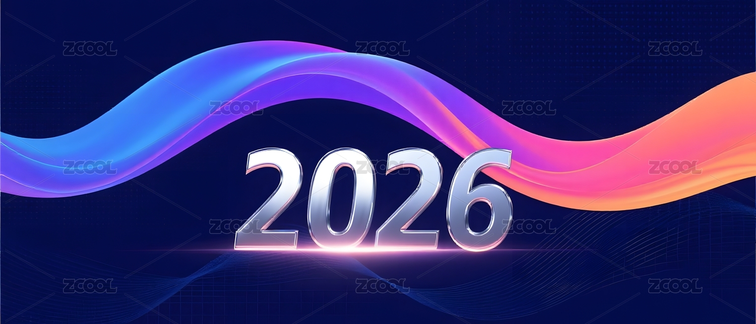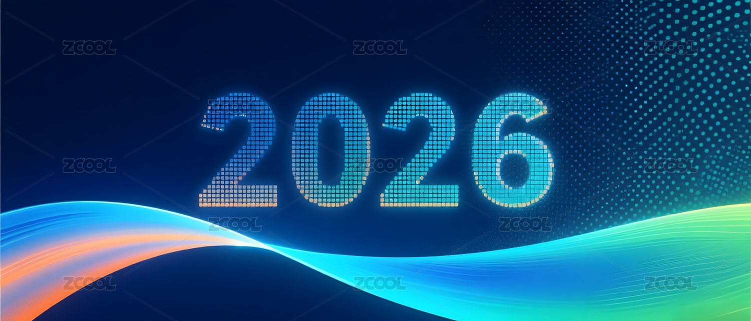 数字波浪背景中的2026字样